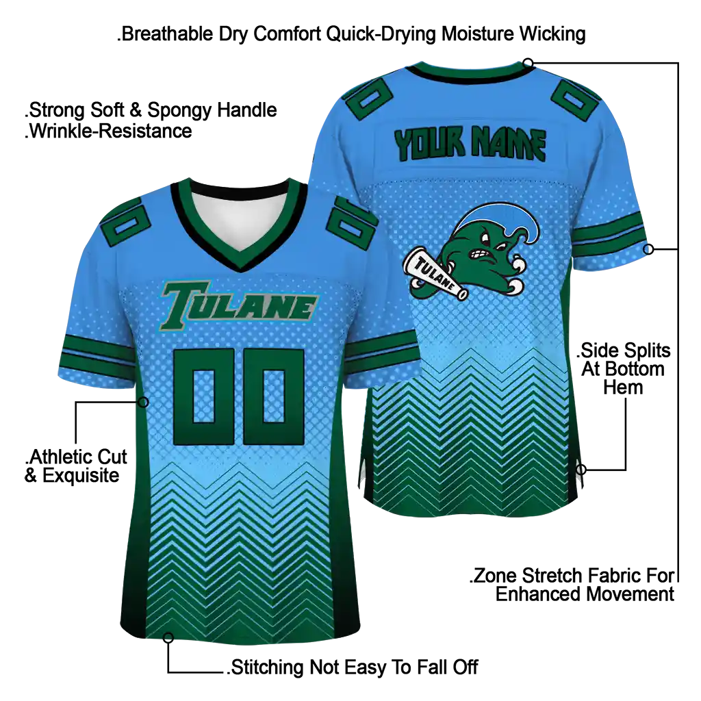 Tulane Green Wave Jersey – Custom Halftone Sweep Blue Black