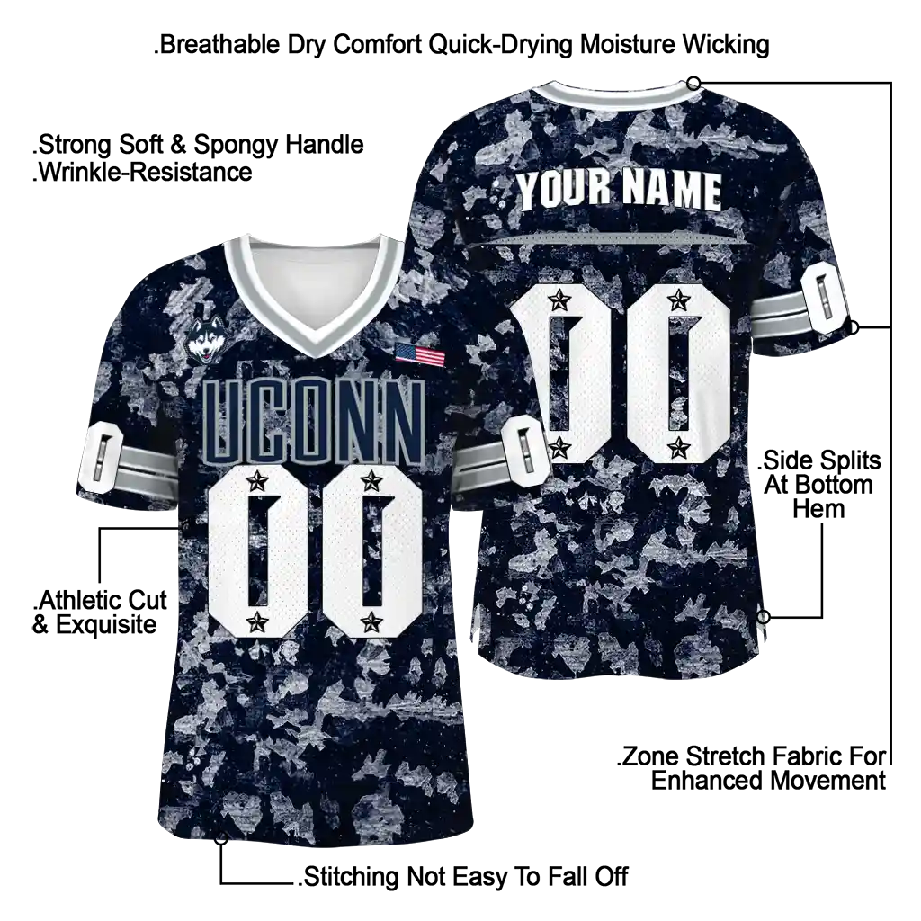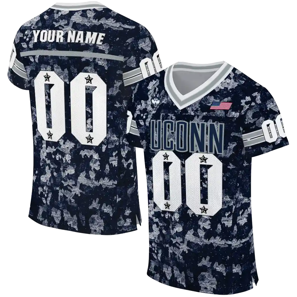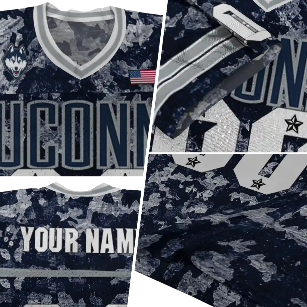 UConn Huskies Jersey – Custom Camouflage Abstract Blue