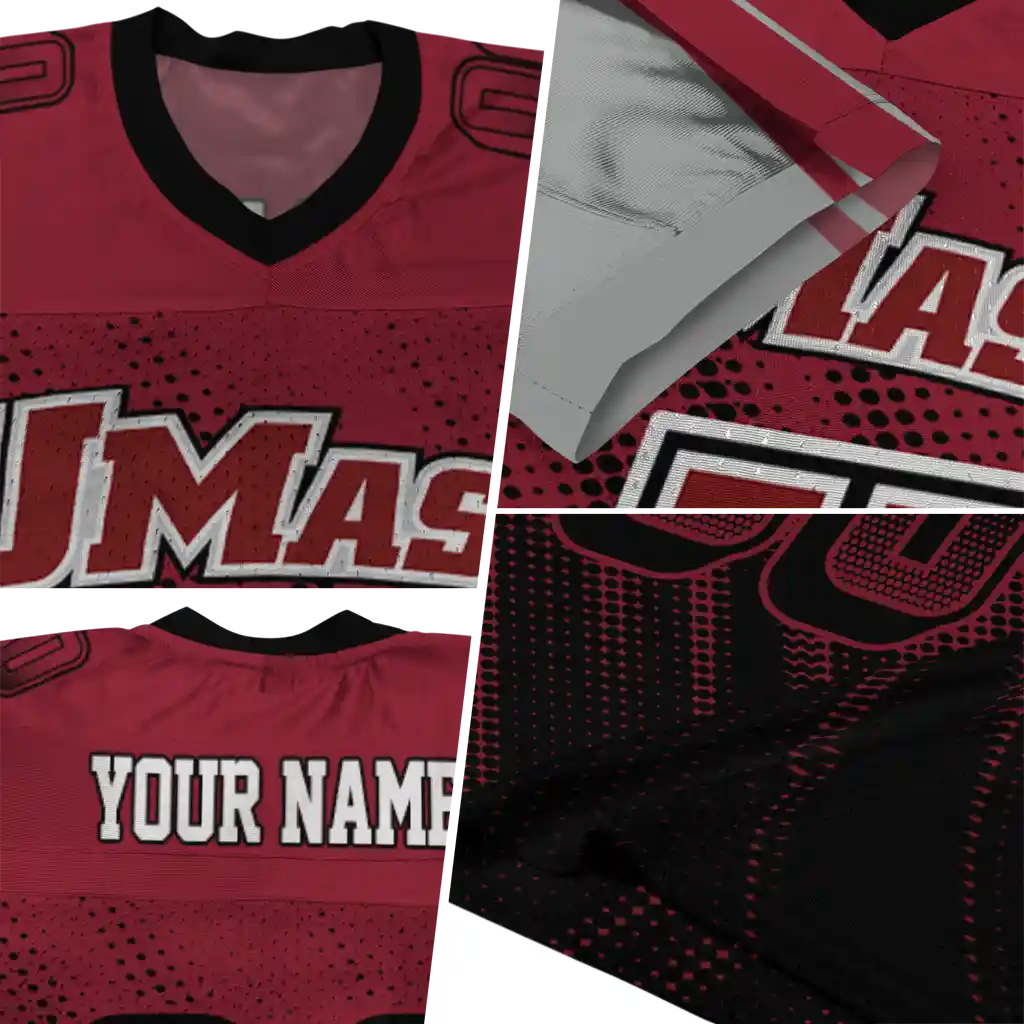 UMass Minutemen Jersey – Custom Halftone Flow Red Black