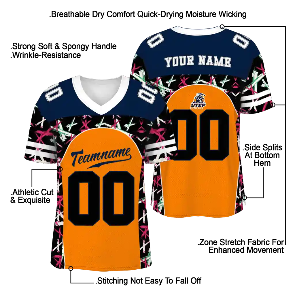 UTEP Miners Brushstroke Jersey – Custom Xs Orange Black