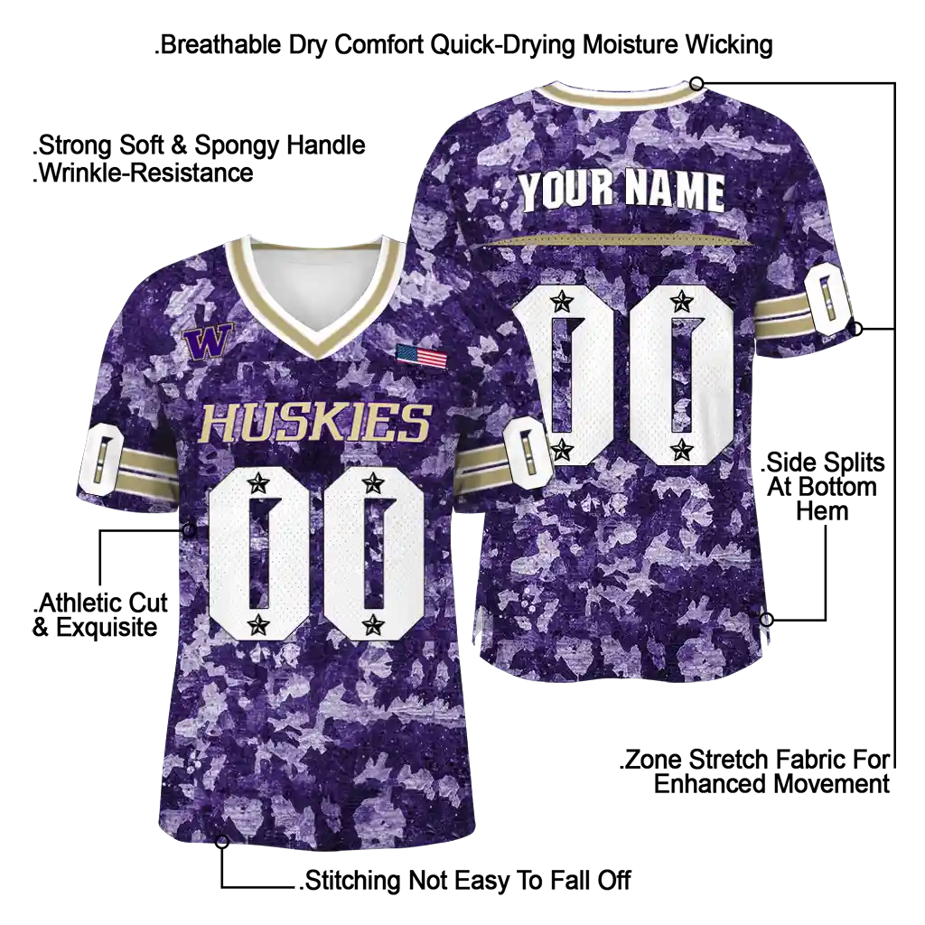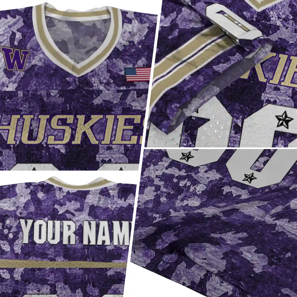 Washington Huskies Jersey – Custom Camouflage Abstract Purple