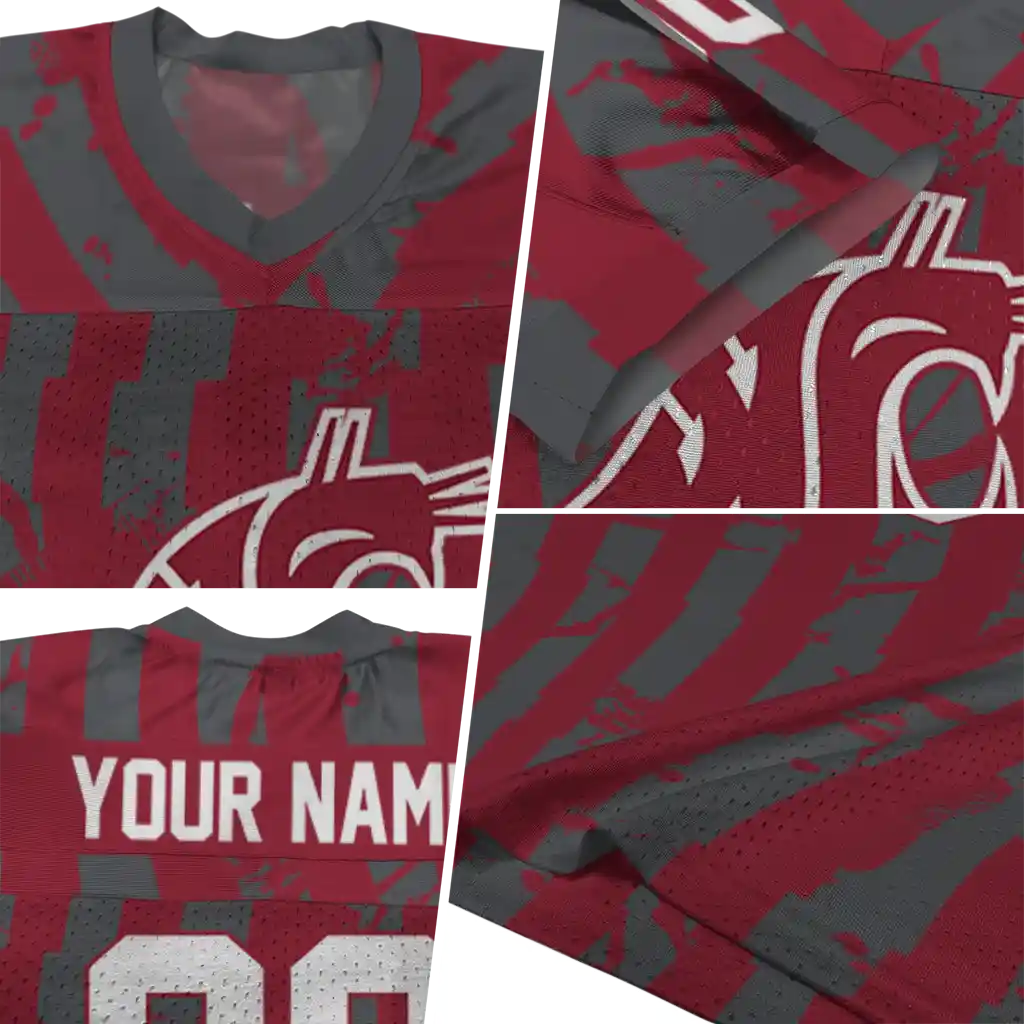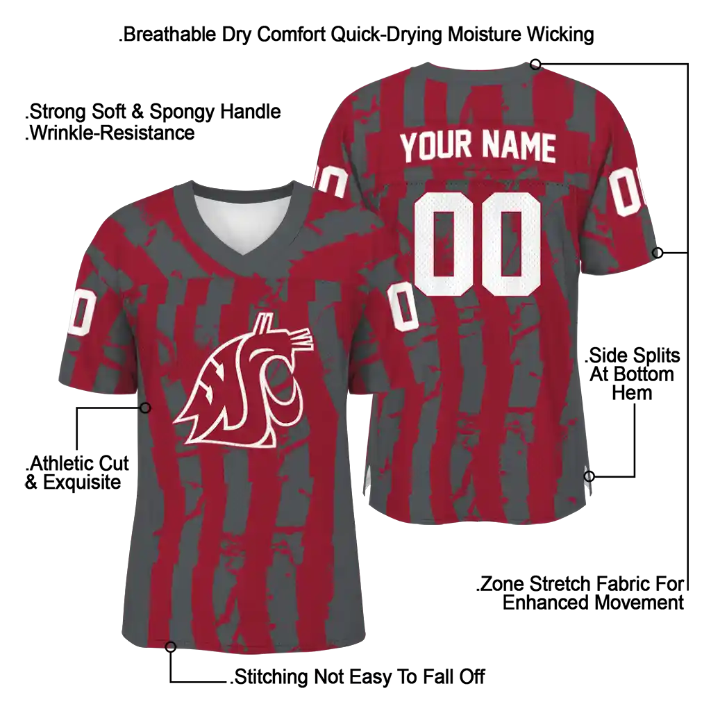 Washington State Cougars Jersey – Custom Stripe Splatter Crimson