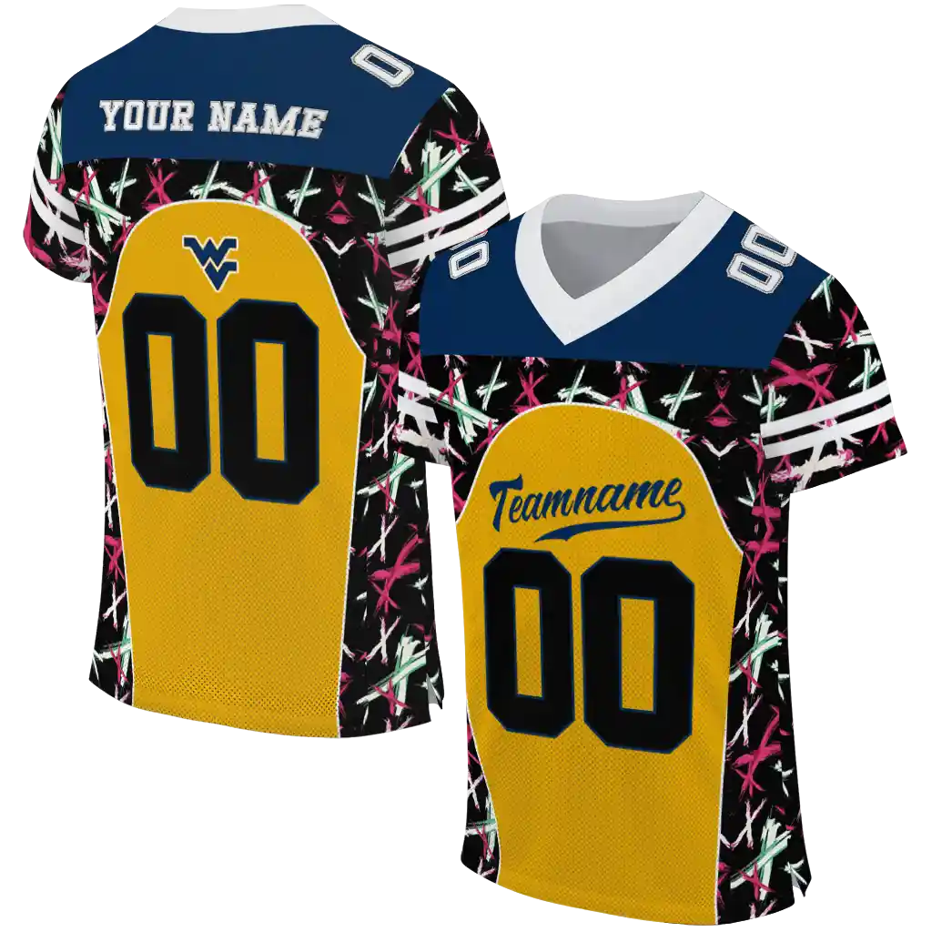 West Virginia Mountaineers Jersey – Custom Brushstroke Xs Gold Black