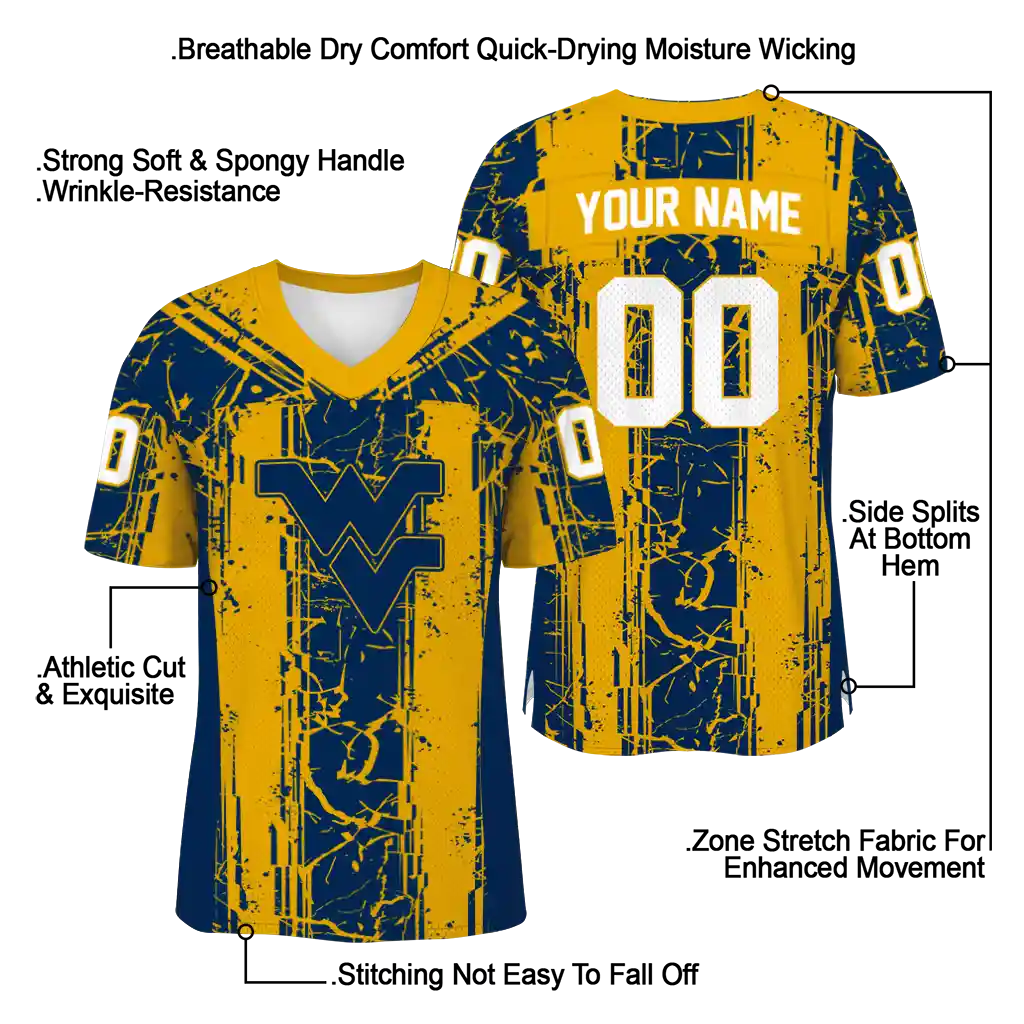 West Virginia Mountaineers Jersey – Custom Rugged Stripes Blue