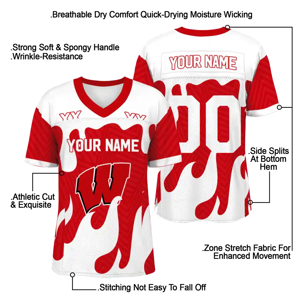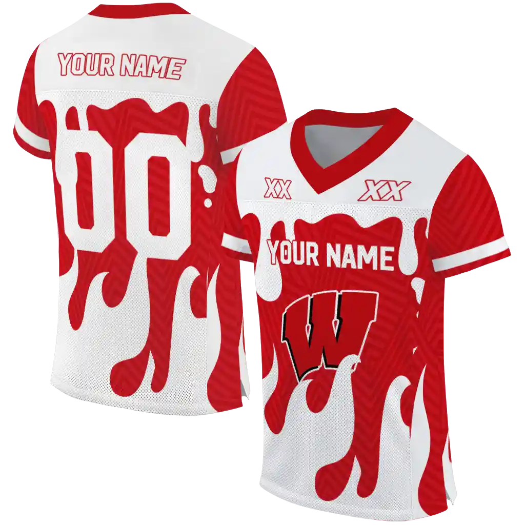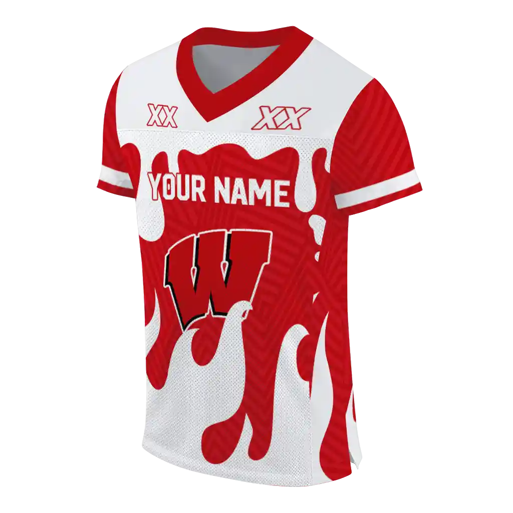 Wisconsin Badgers Jersey – Custom Dripping Flames Red White