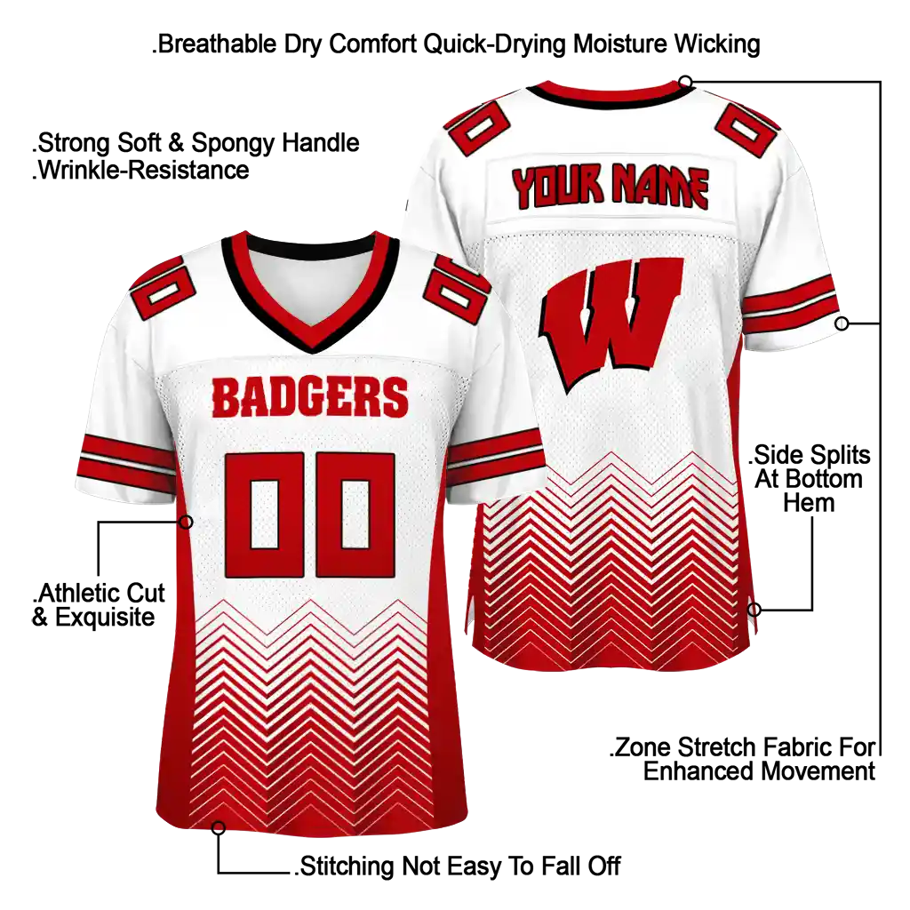 Wisconsin Badgers Jersey – Custom Halftone Sweep White Black
