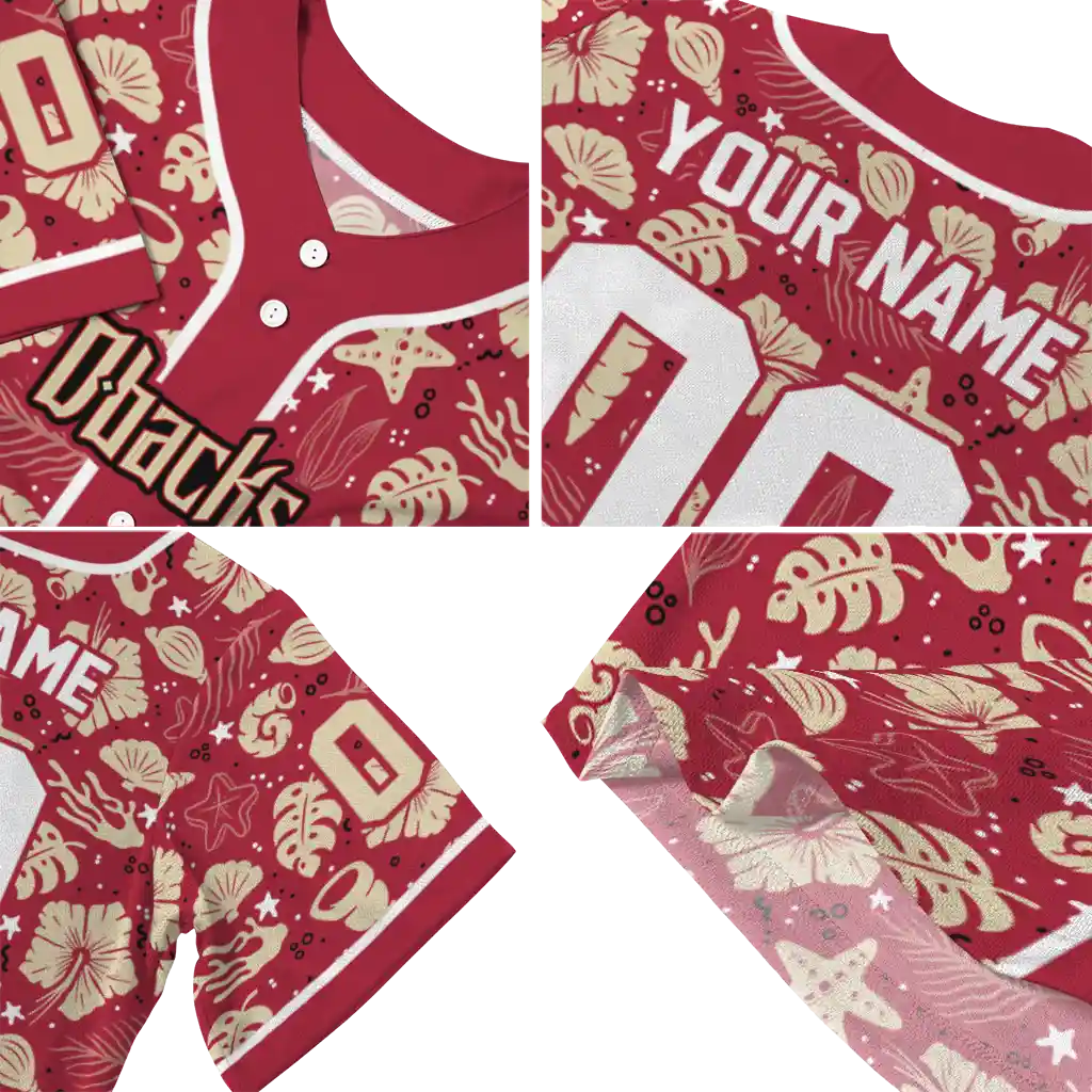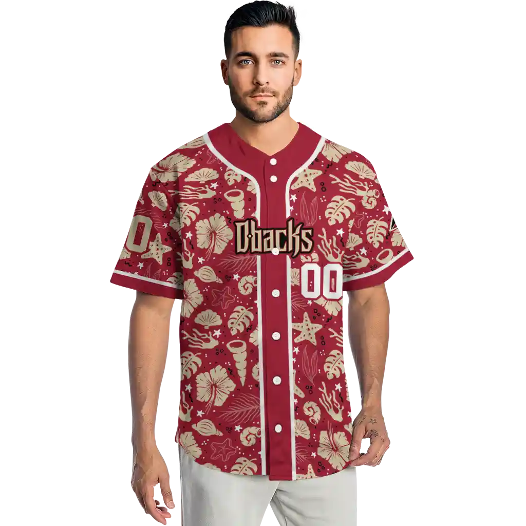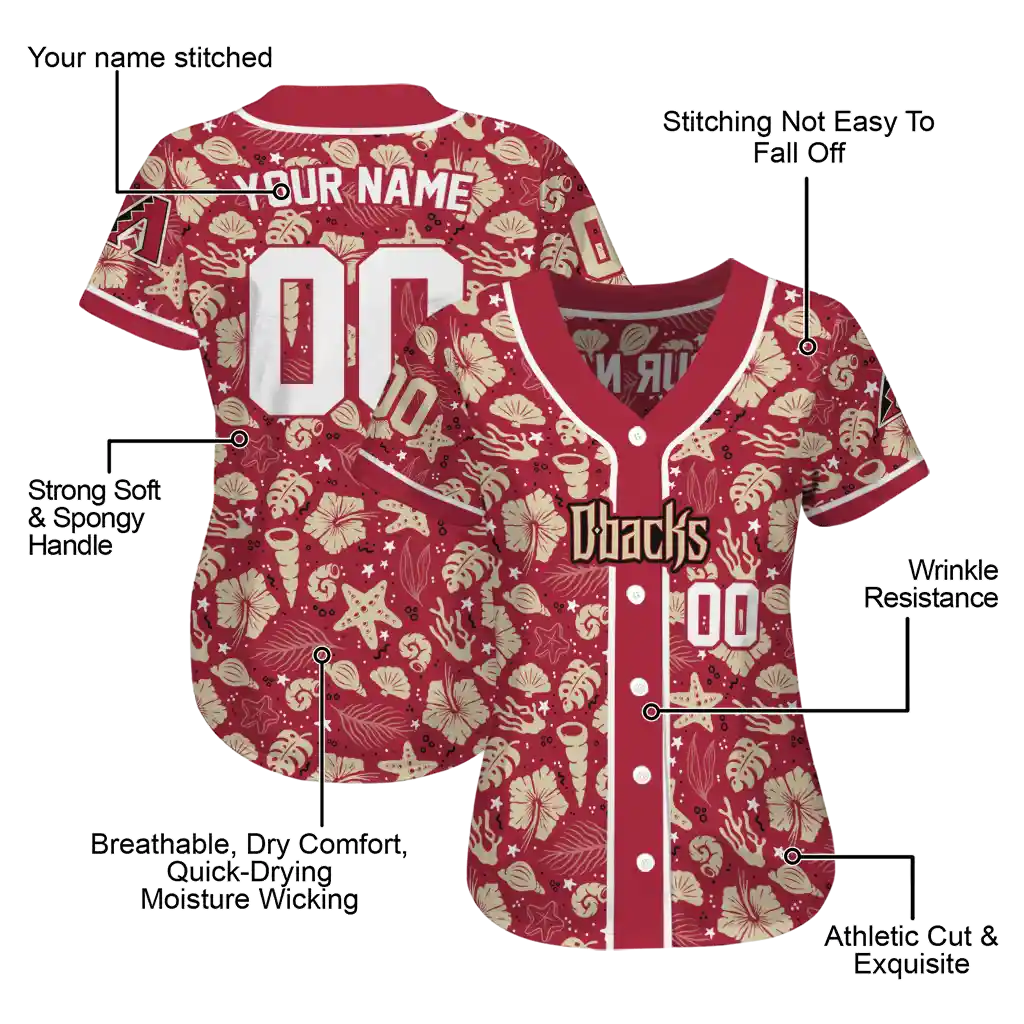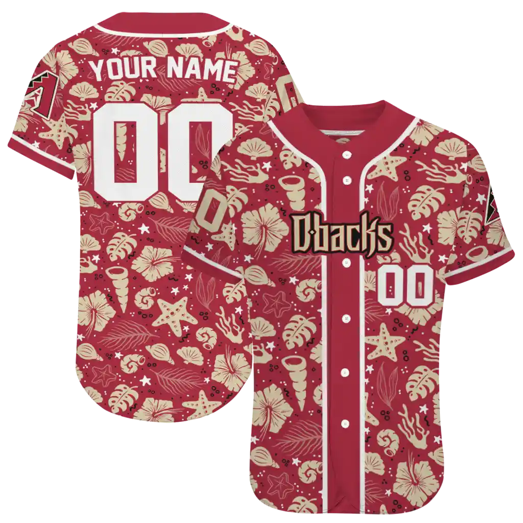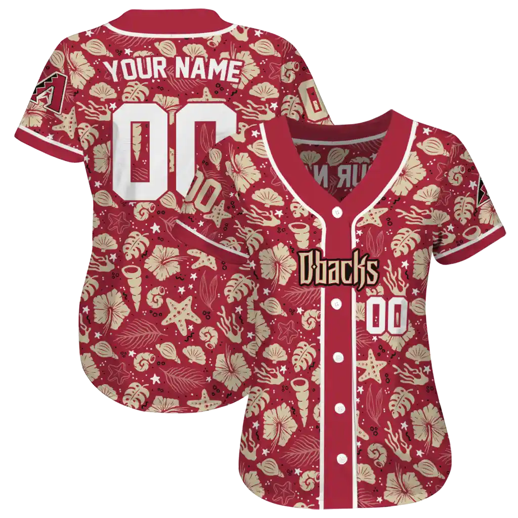 Arizona Diamondbacks Jersey – Customized Tropical Hibiscus Seashells Red