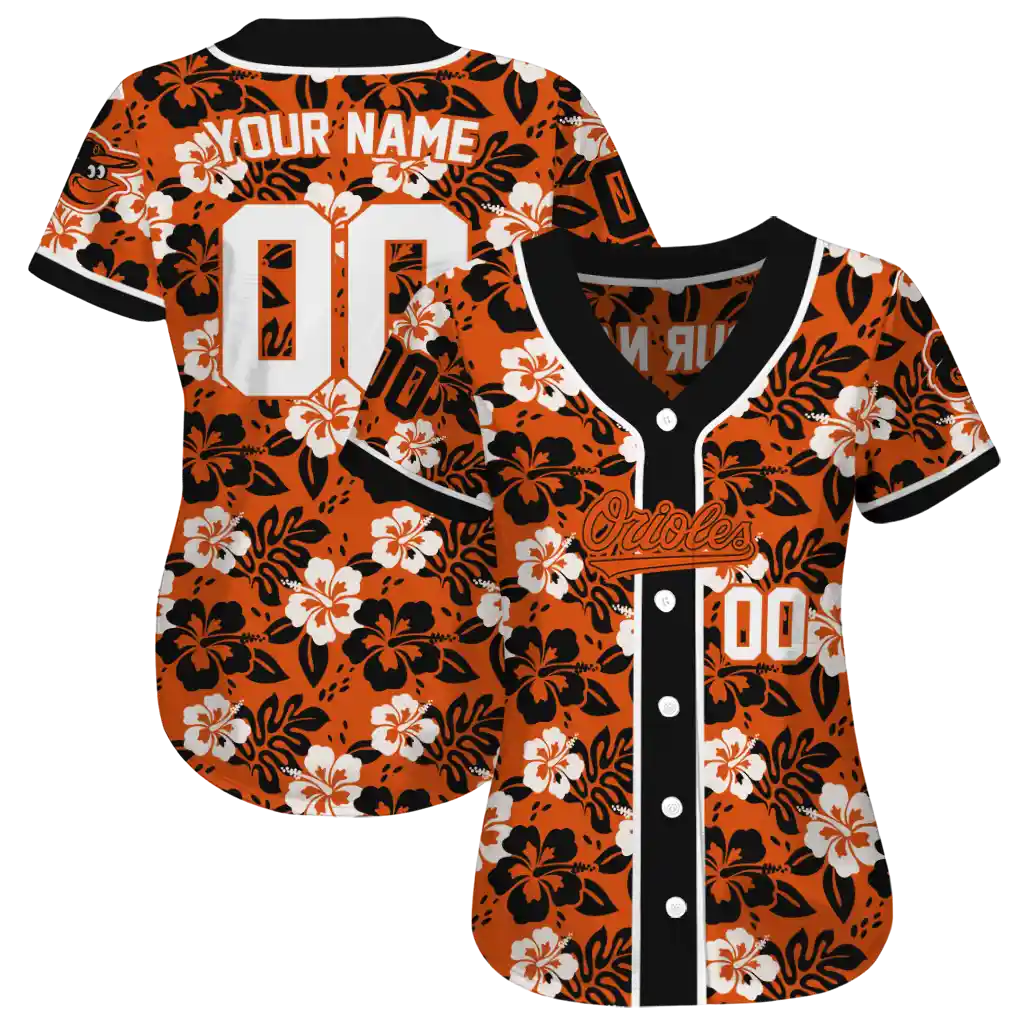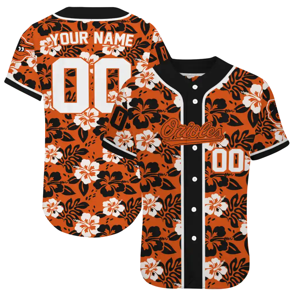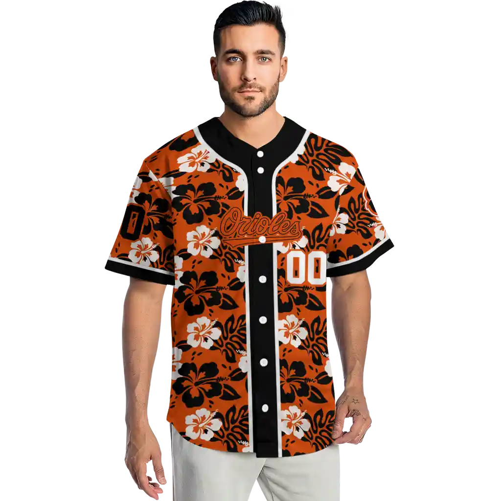 Baltimore Orioles Jersey – Customized Tropical Hibiscus Black