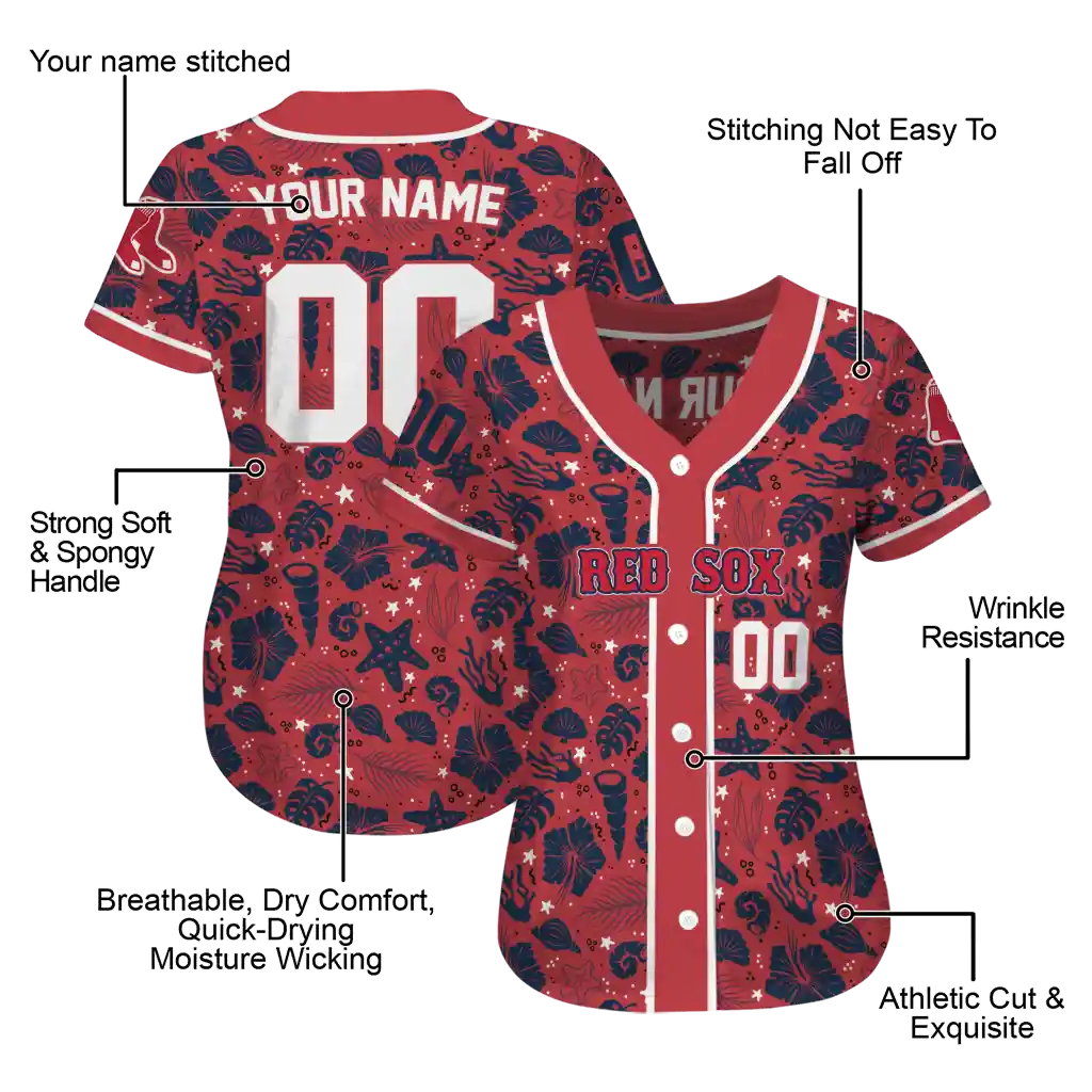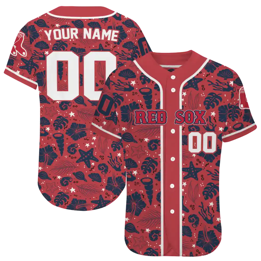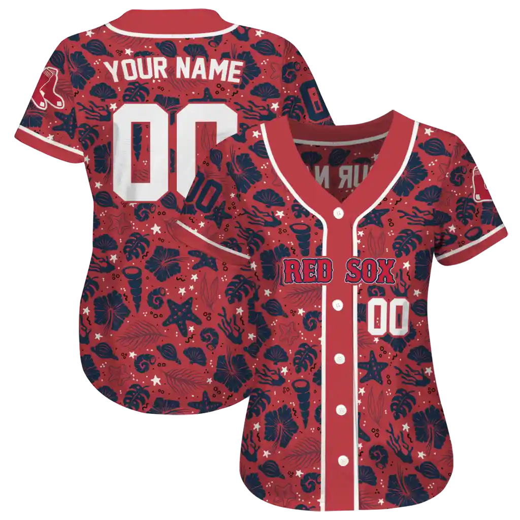 Boston Red Sox Jersey – Customized Tropical Hibiscus Seashells Red