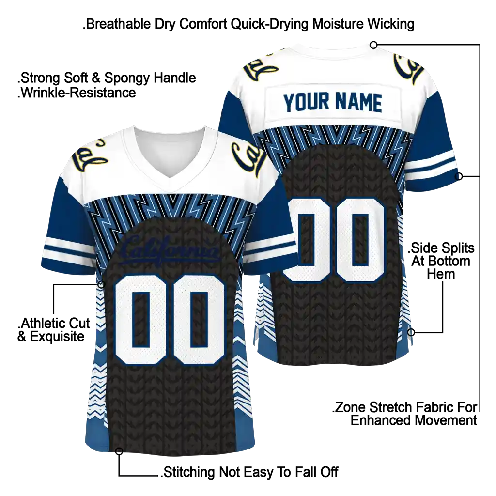 California Golden Bears Tire Jersey – Customized Arrows Blue Black White