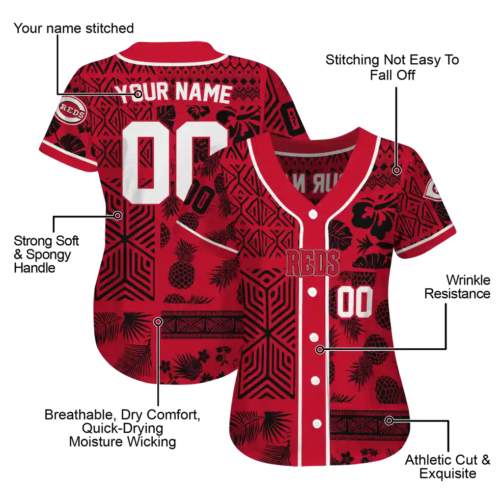 Cincinnati Reds Jersey – Customized Pineapple Palm Geo Red