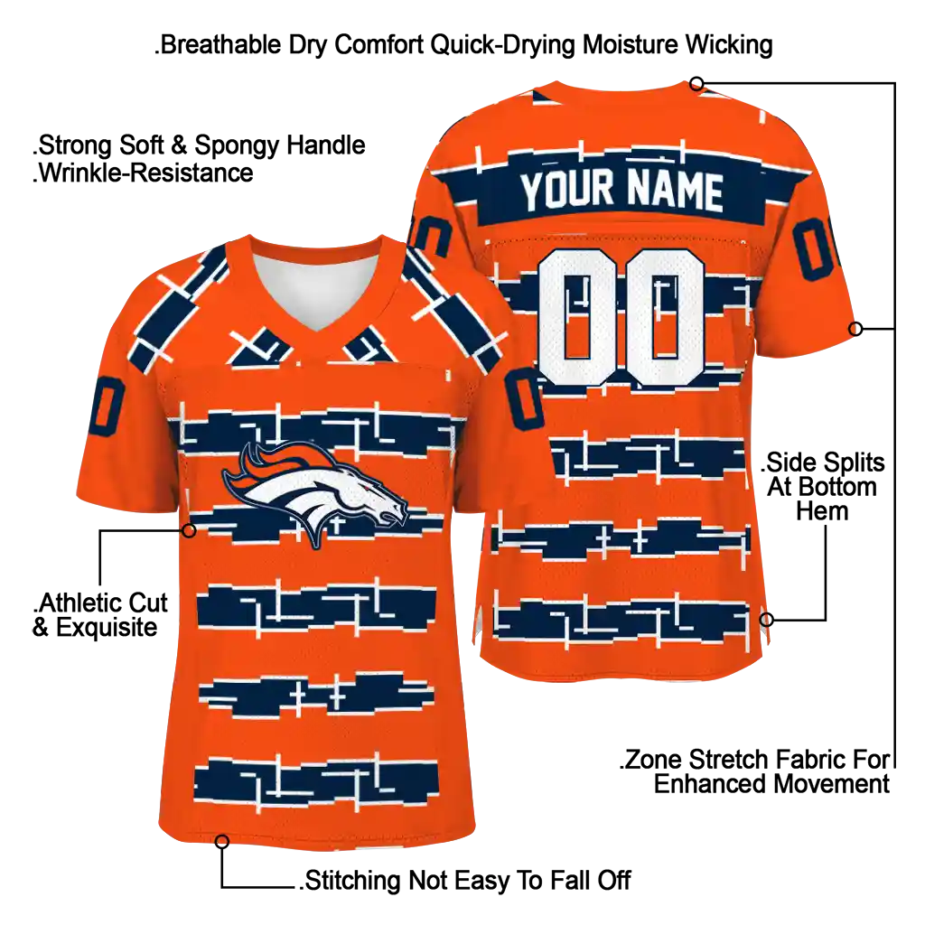 Denver Broncos Jersey – Customized Layered Grids Orange