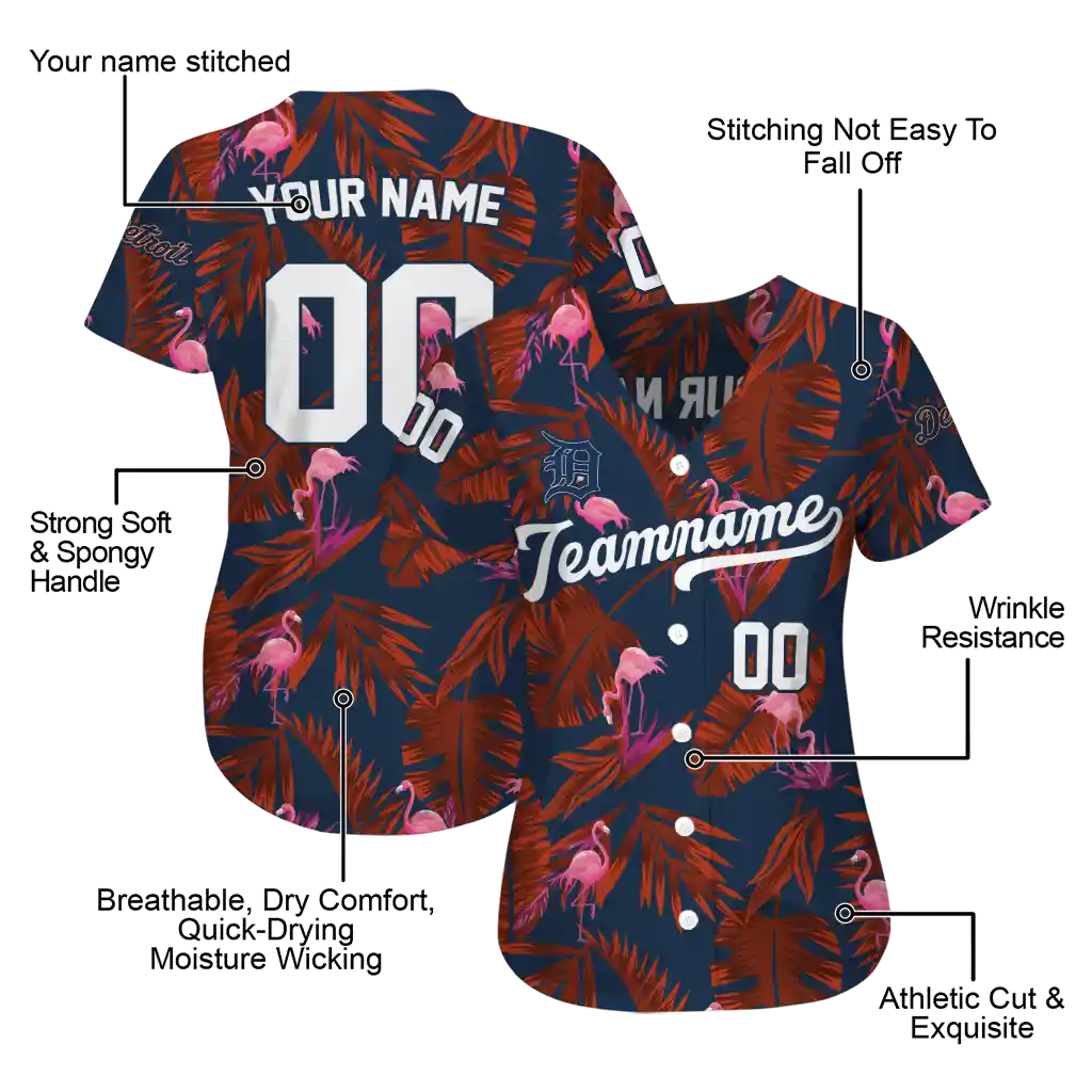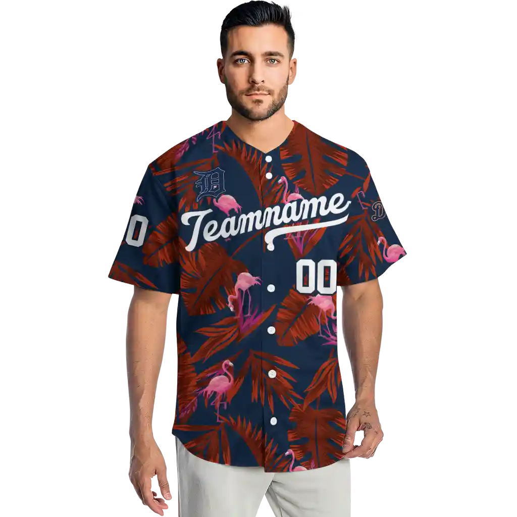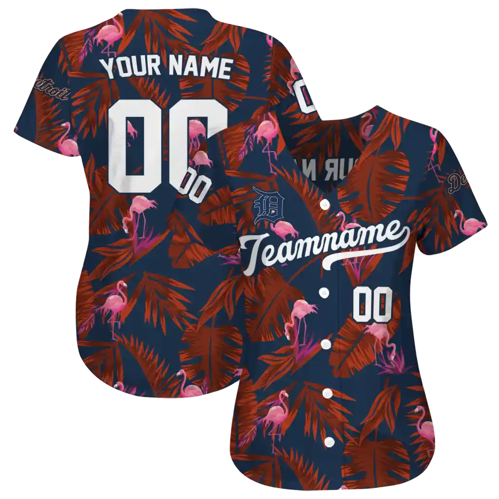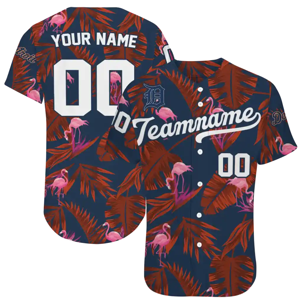 Detroit Tigers Jersey – Customized Tropical Flamingo Navy