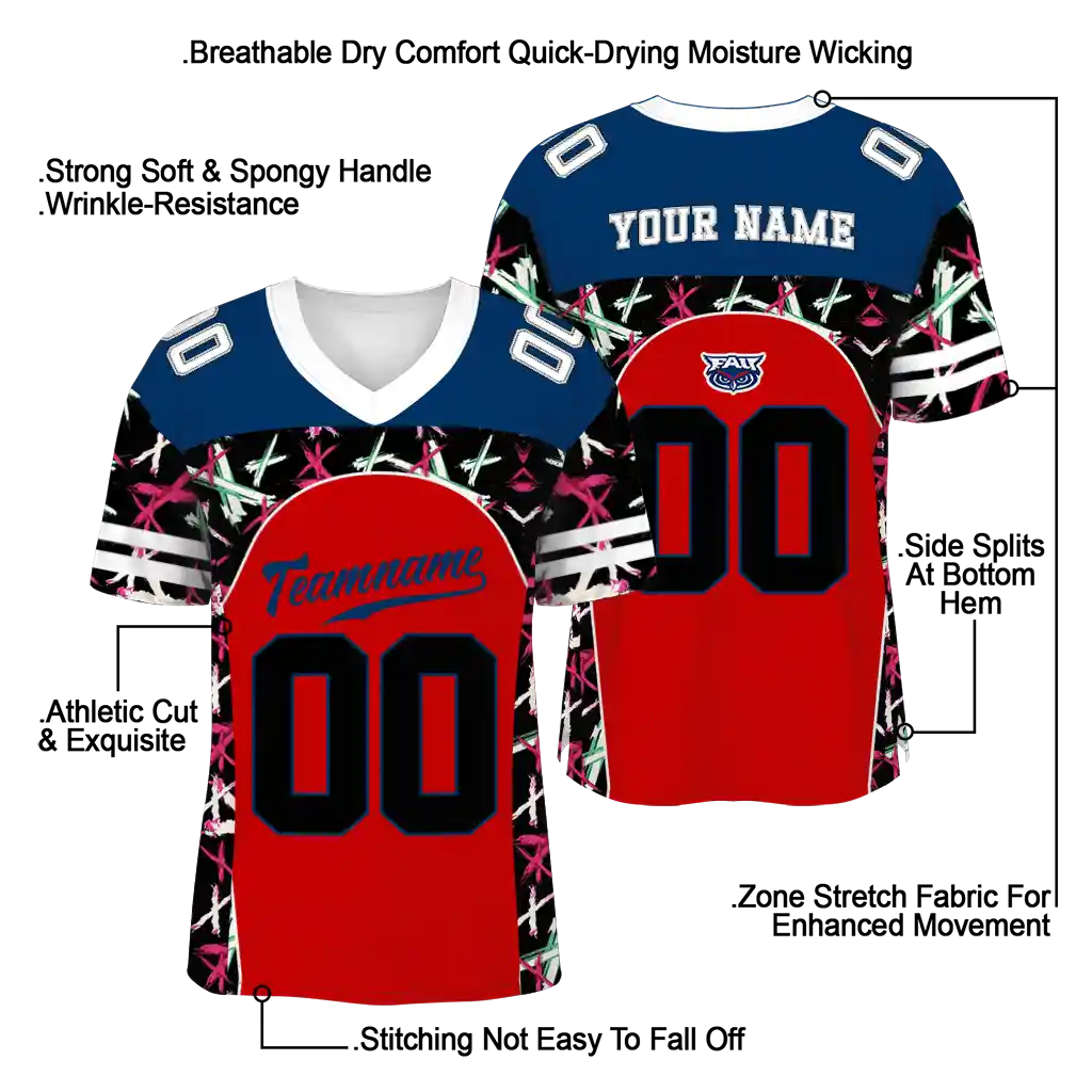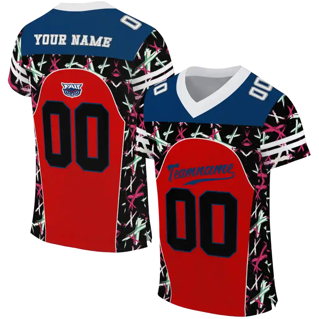 Florida Atlantic Owls Jersey – Customized Brushstroke Xs Red Black