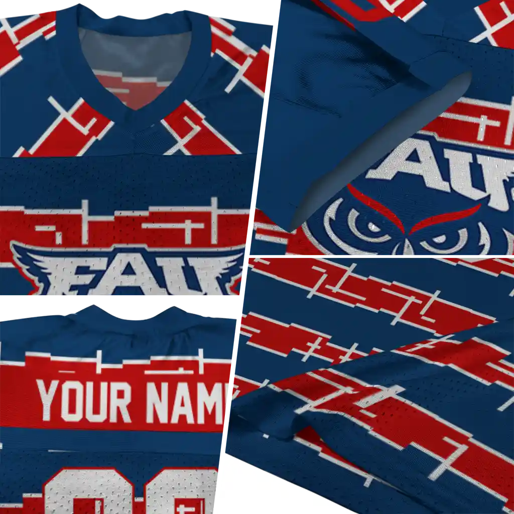 Florida Atlantic Owls Jersey – Customized Layered Grids Blue