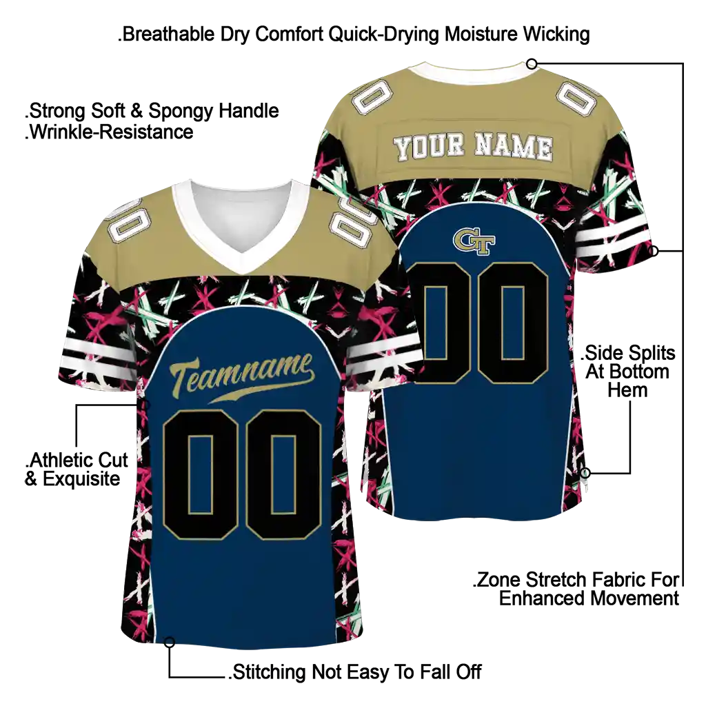 Georgia Tech Yellow Jackets Jersey – Customized Brushstroke Xs Blue Black
