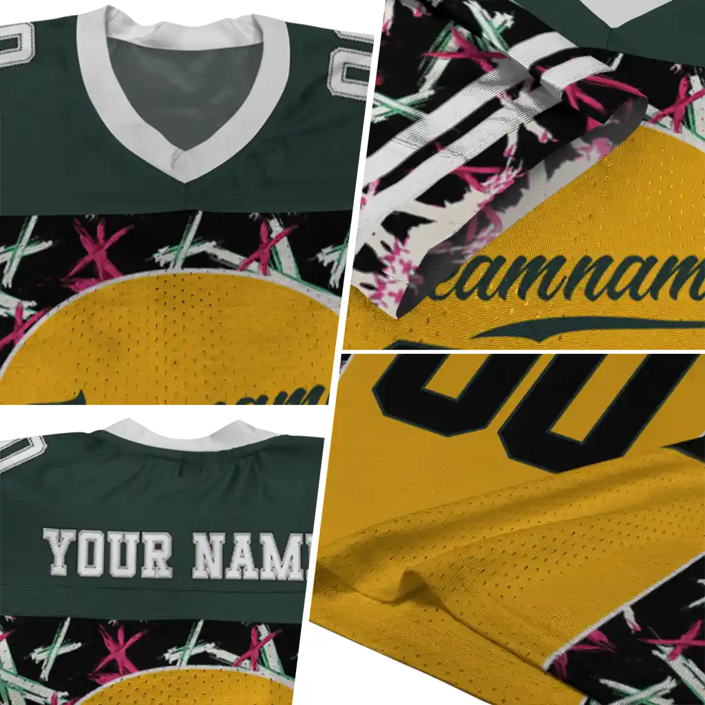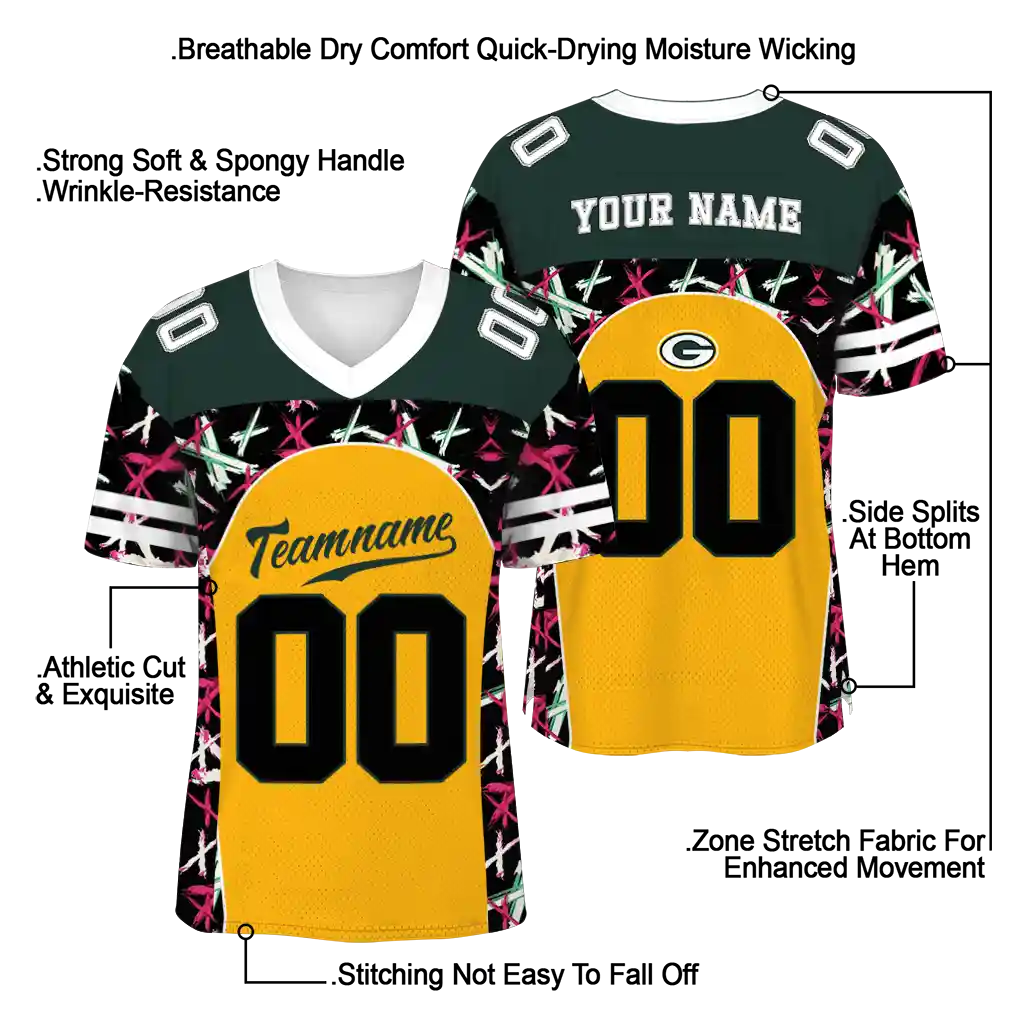 Green Bay Packers Jersey – Customized Brushstroke Xs Gold Black