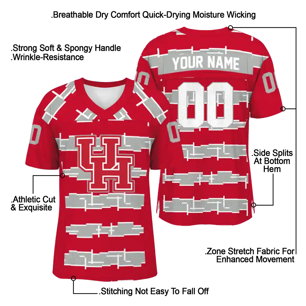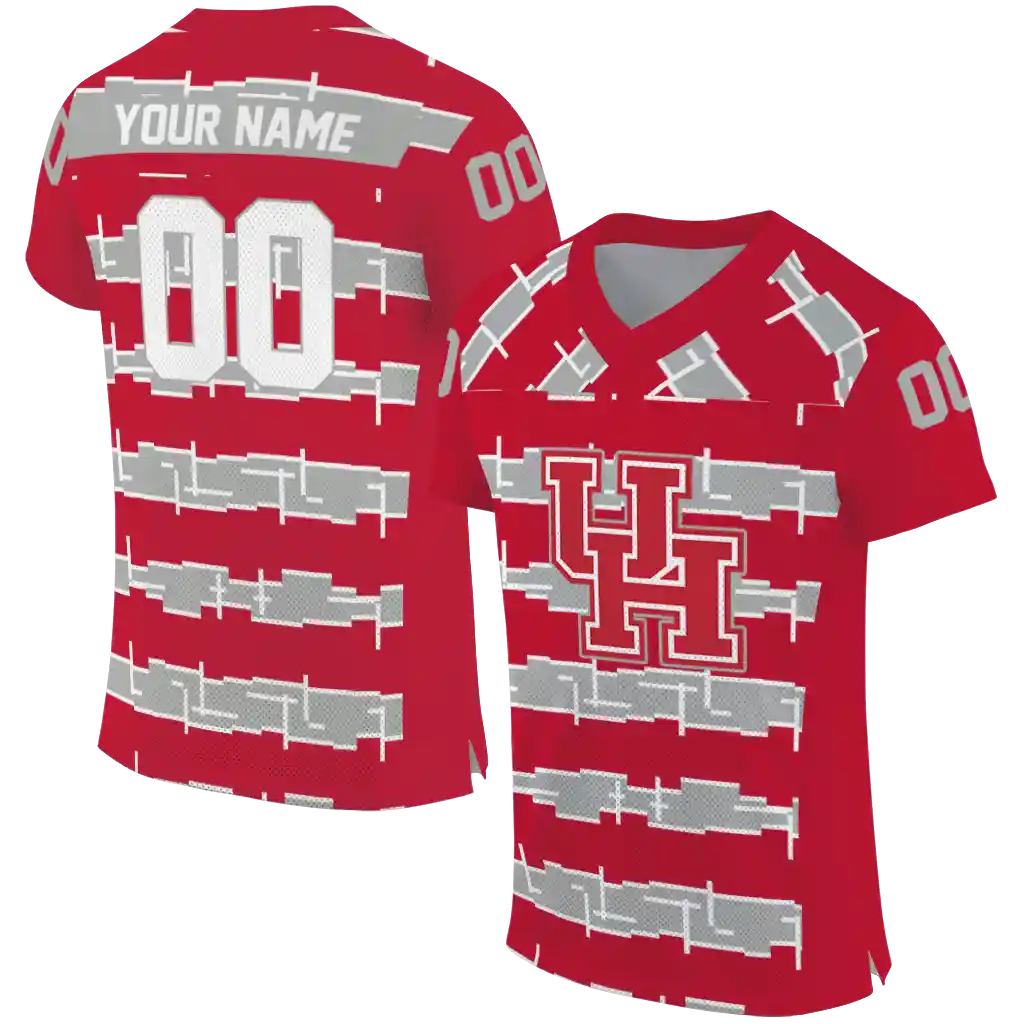 Houston Cougars Jersey – Customized Layered Grids Red