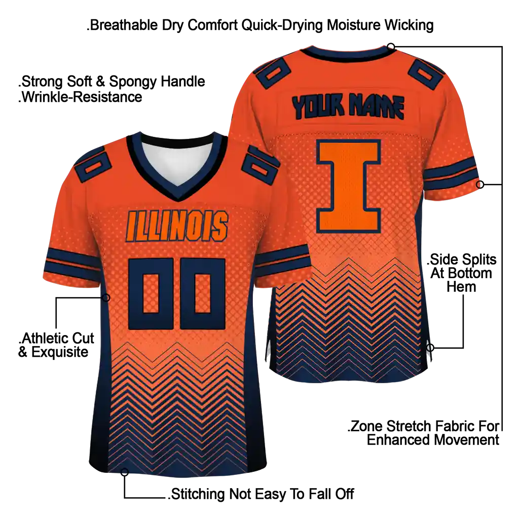 Illinois Fighting Illini Jersey – Customized Halftone Sweep Orange Black