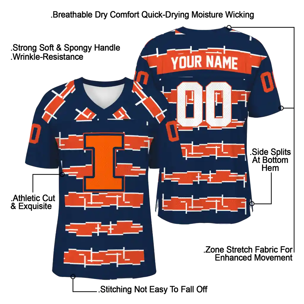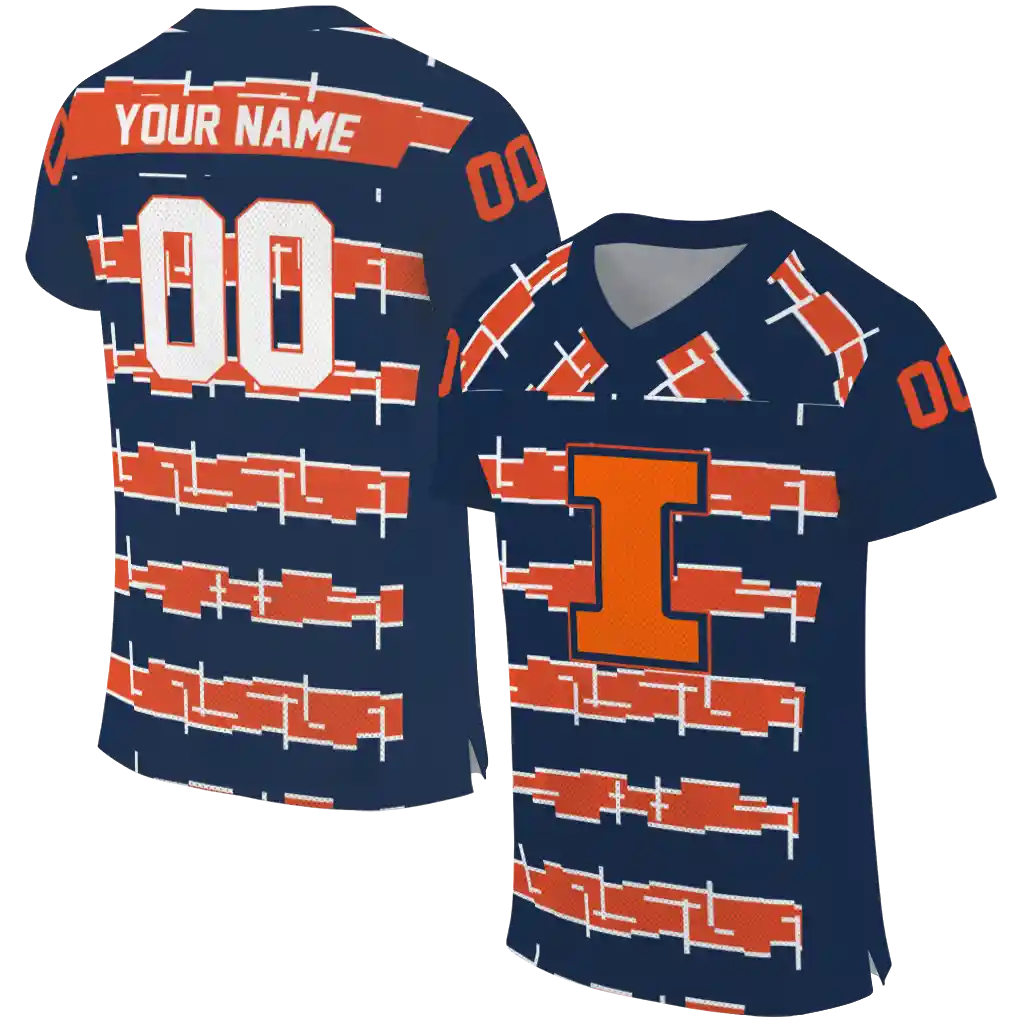Illinois Fighting Illini Jersey – Customized Layered Grids Blue