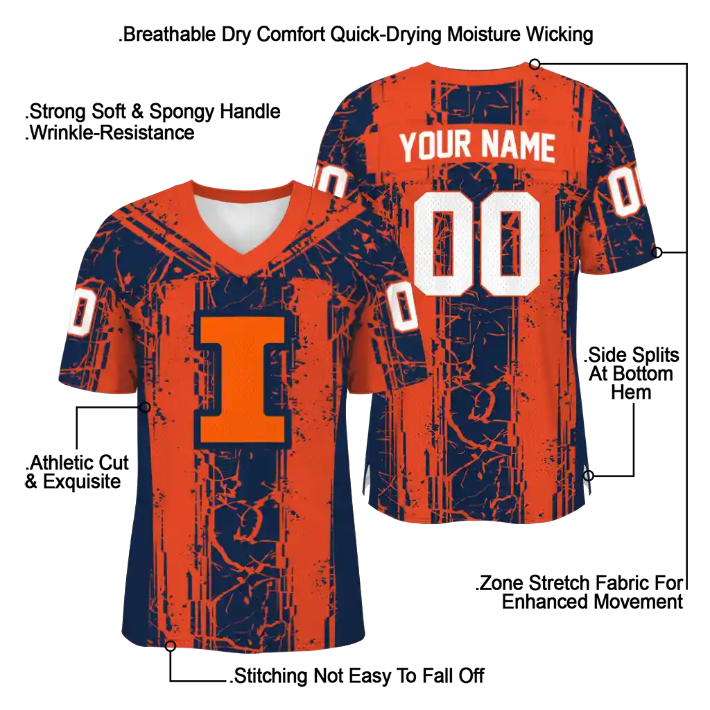 Illinois Fighting Illini Jersey – Customized Rugged Stripes Blue