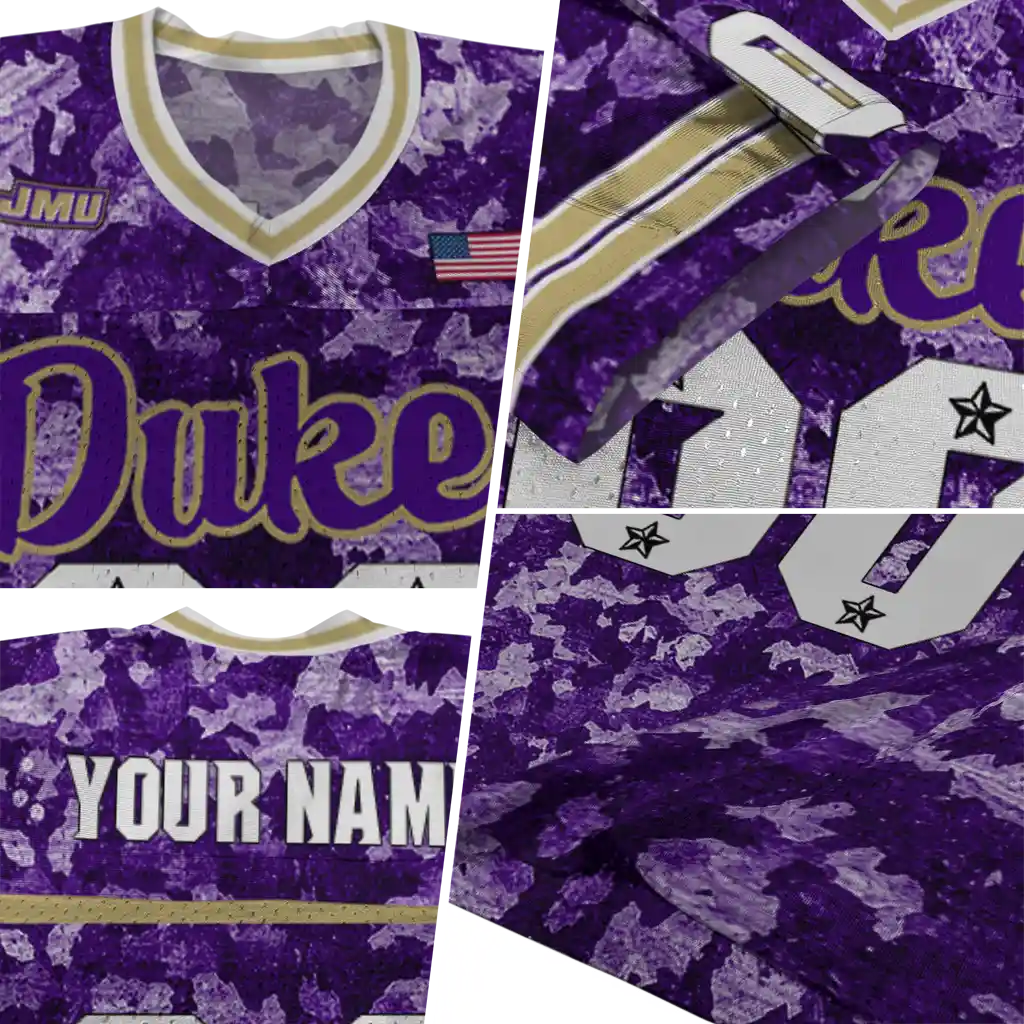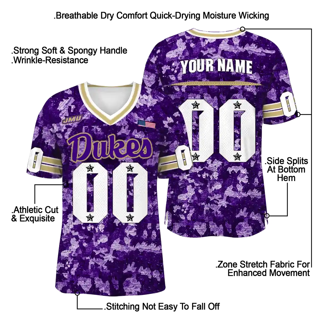 James Madison Dukes Jersey – Customized Camouflage Abstract Purple