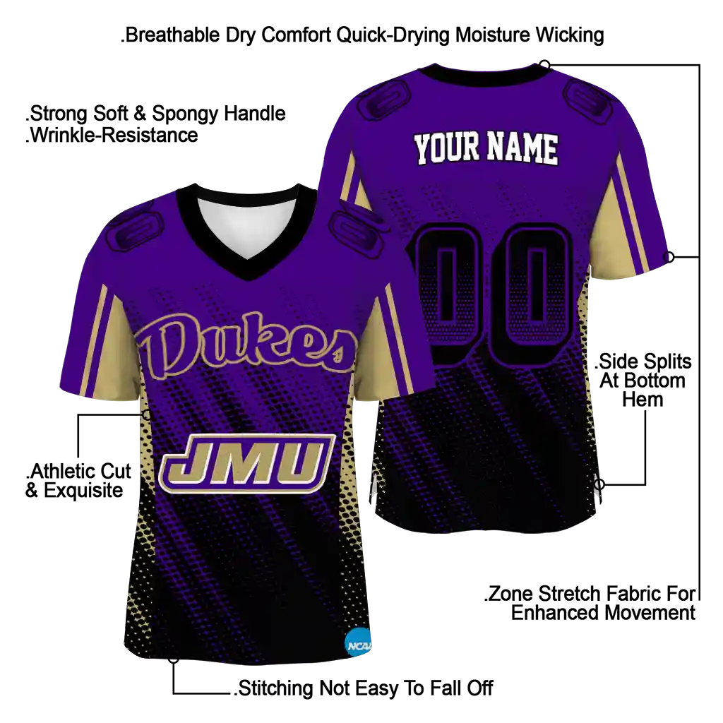 James Madison Dukes Jersey – Customized Halftone Flow Purple Black