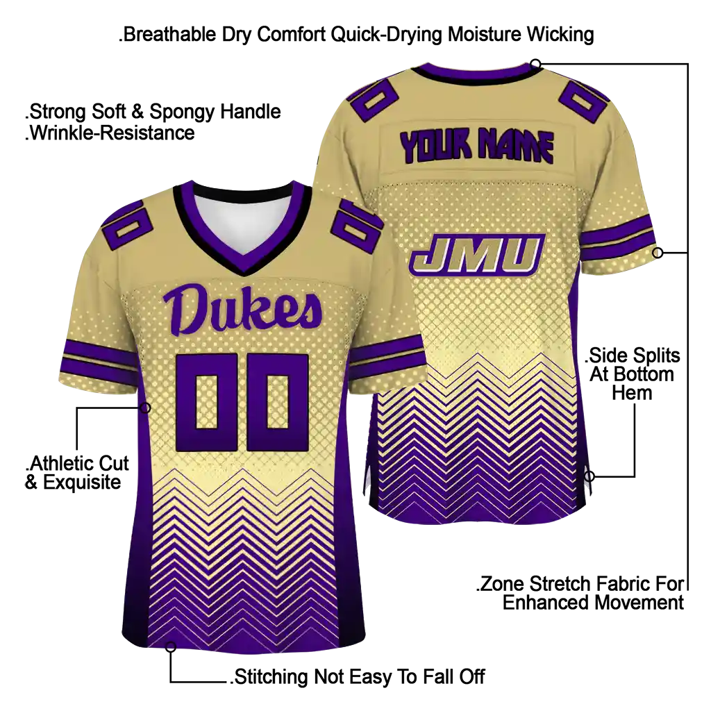 James Madison Dukes Jersey – Customized Halftone Sweep Gold Black
