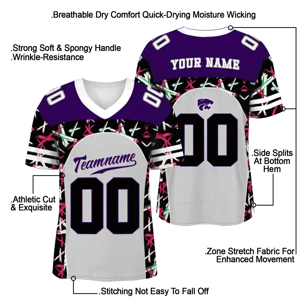 Kansas State Wildcats Jersey – Customized Brushstroke Xs Grey Black