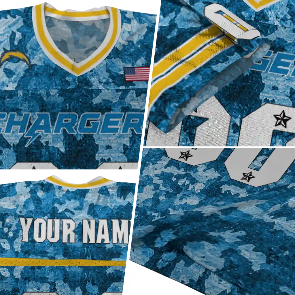 Los Angeles Chargers Jersey – Customized Camouflage Abstract Blue