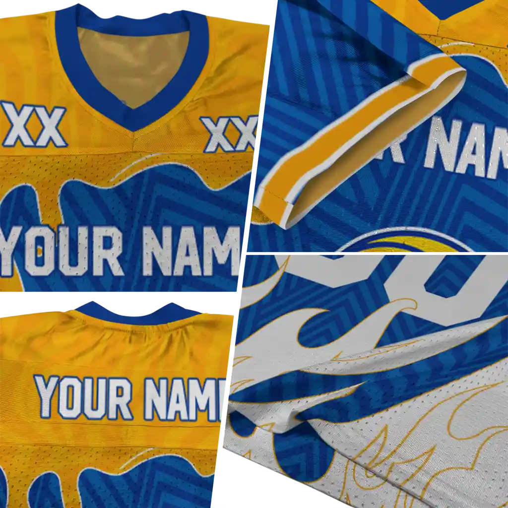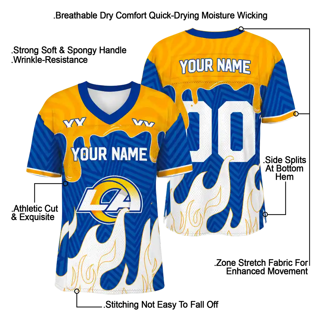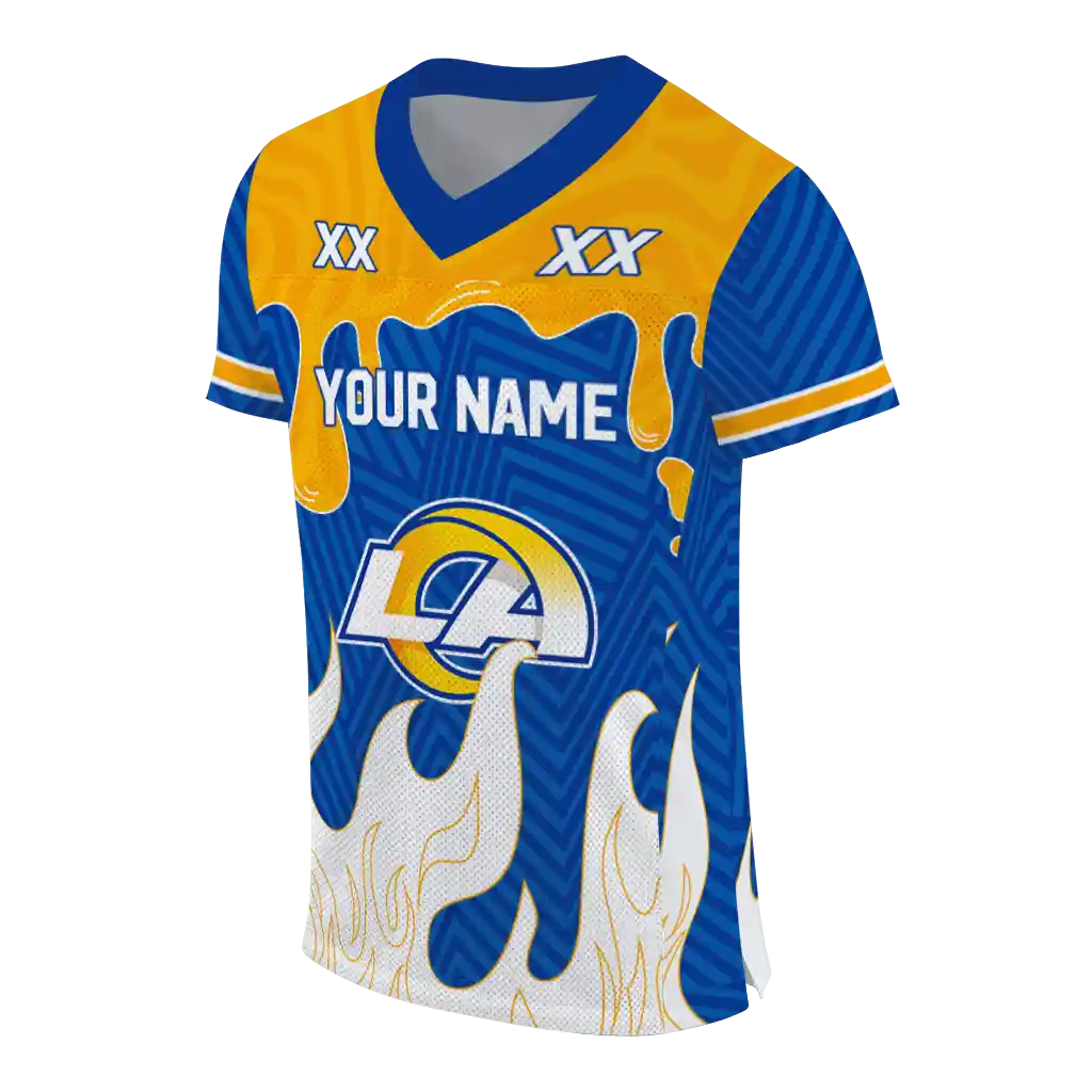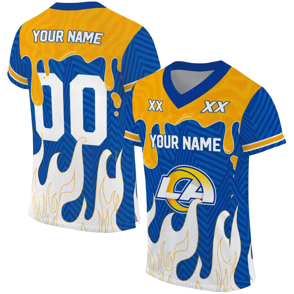 Los Angeles Rams Jersey – Customized Dripping Flames Blue White