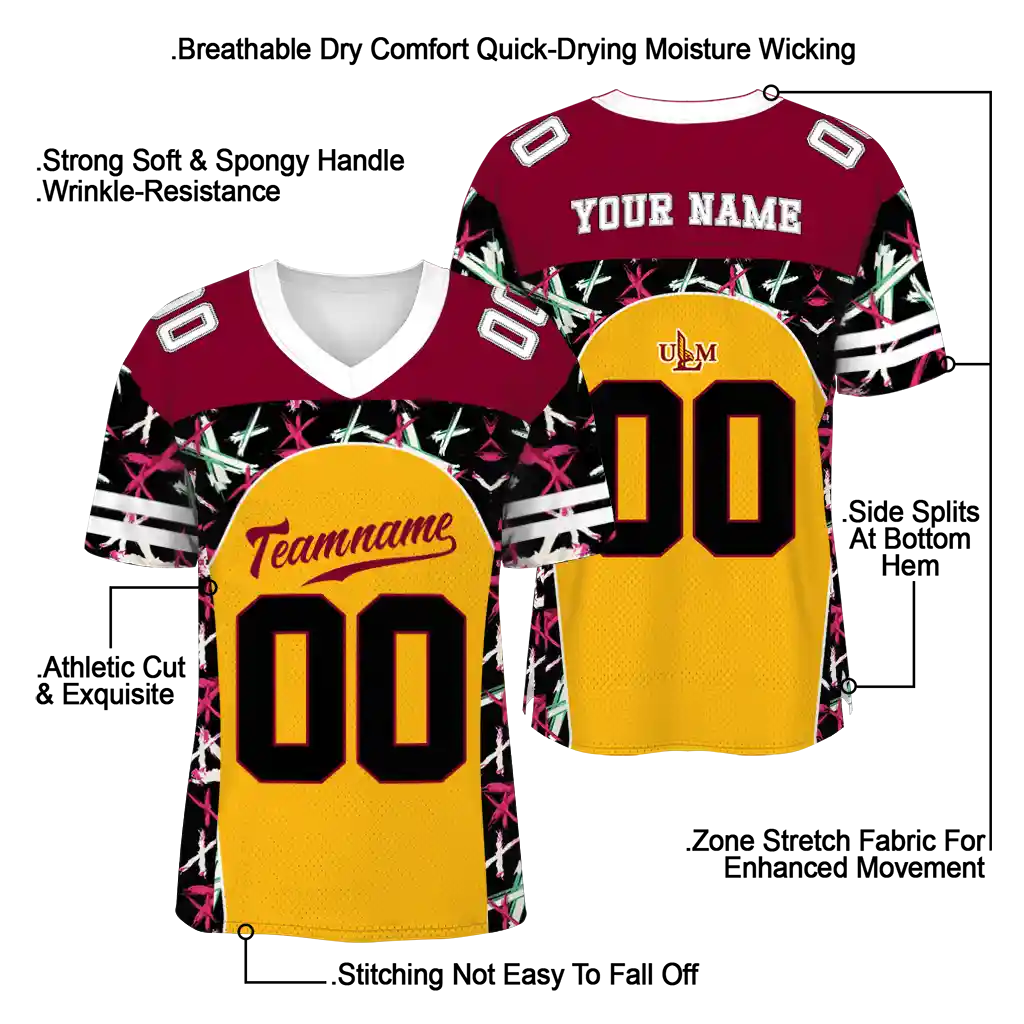 Louisiana-Monroe Warhawks Brushstroke Jersey – Customized Xs Gold Black