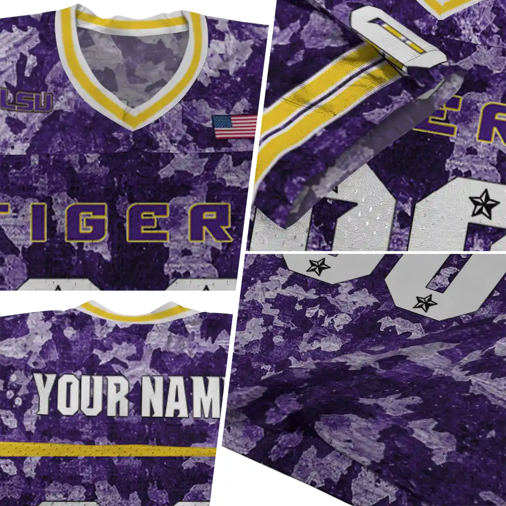 LSU Tigers Jersey – Customized Camouflage Abstract Purple