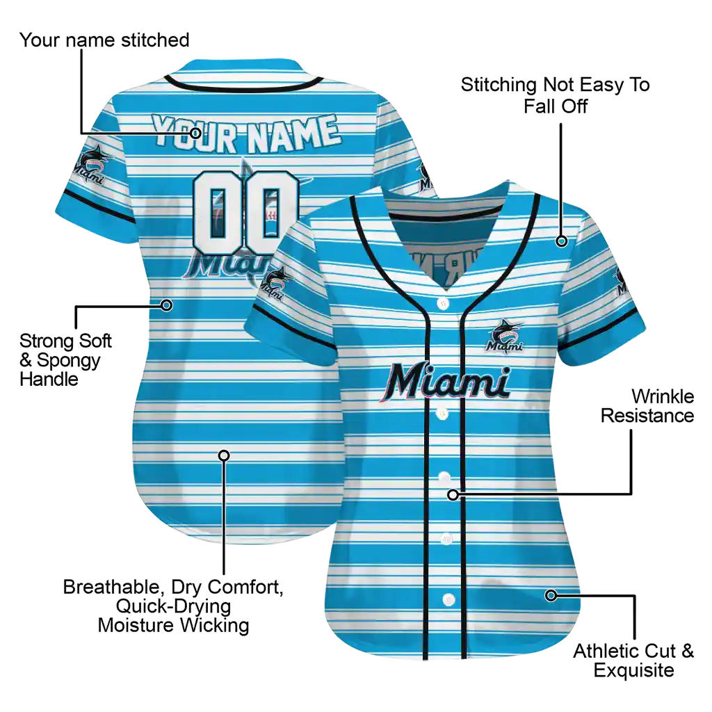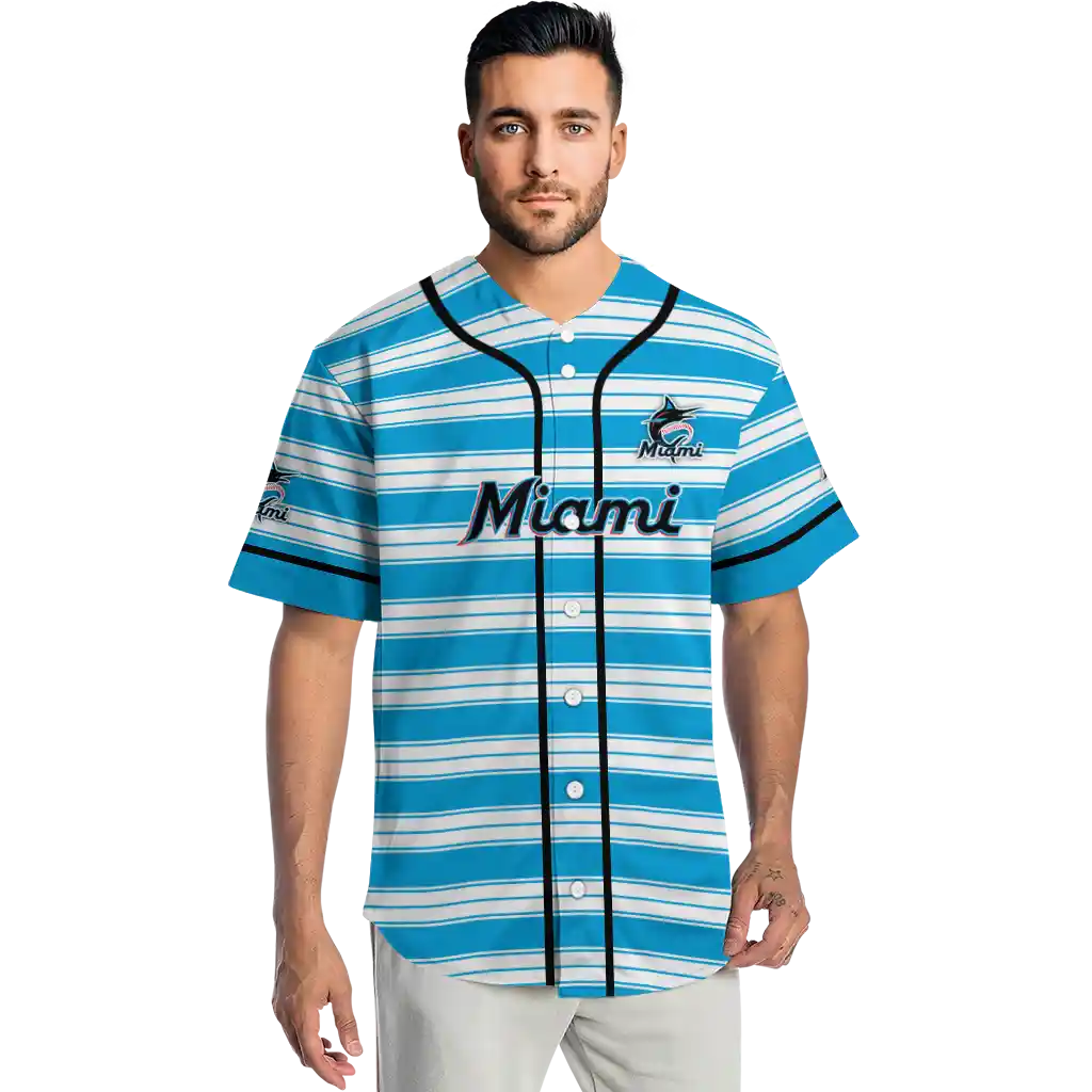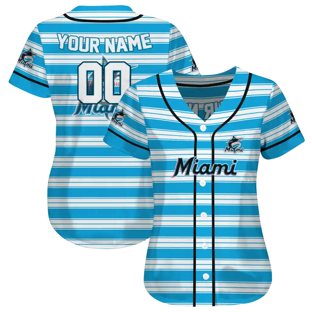 Miami Marlins Jersey – Customized Stripe Layers Blue White