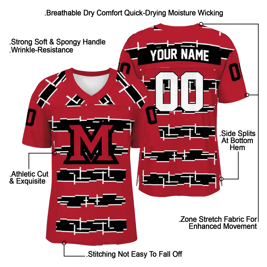 Miami RedHawks Jersey – Customized Layered Grids Red