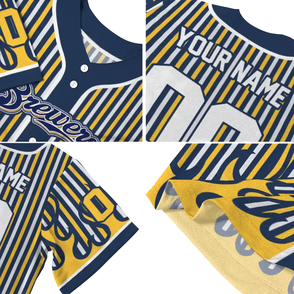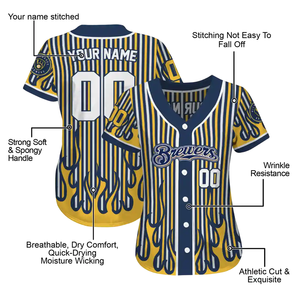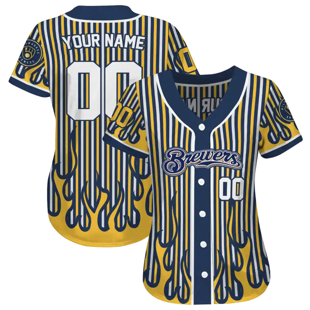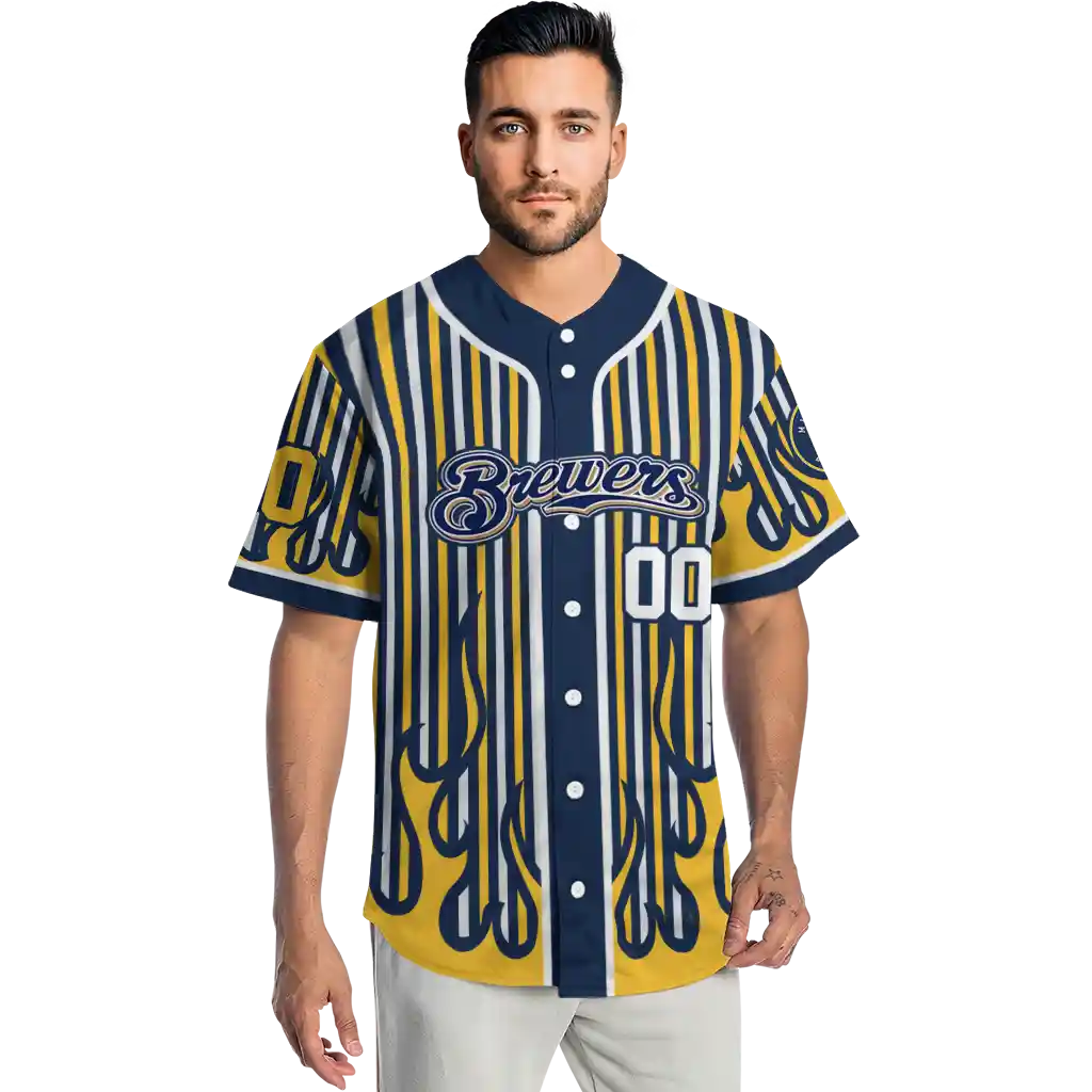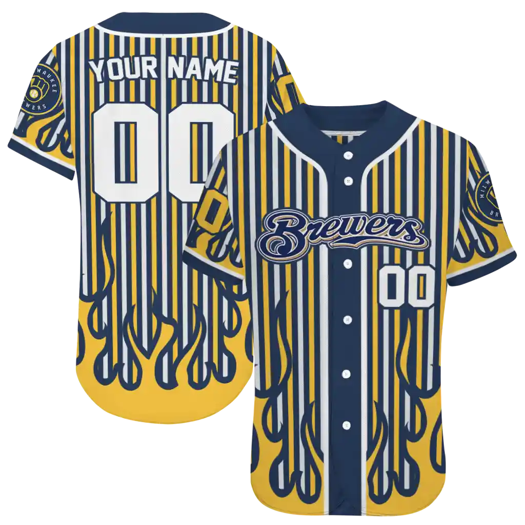 Milwaukee Brewers Blazing Jersey – Customized Stripes Navy Blue