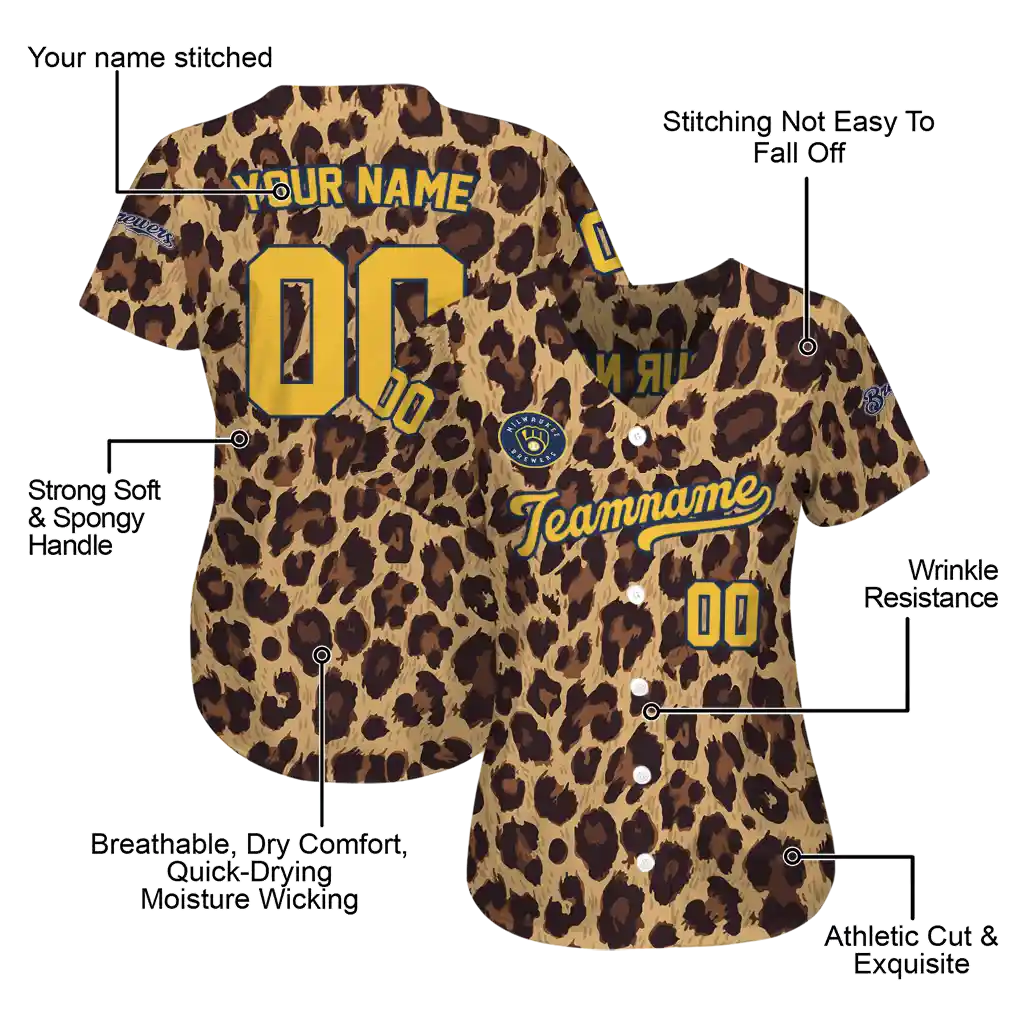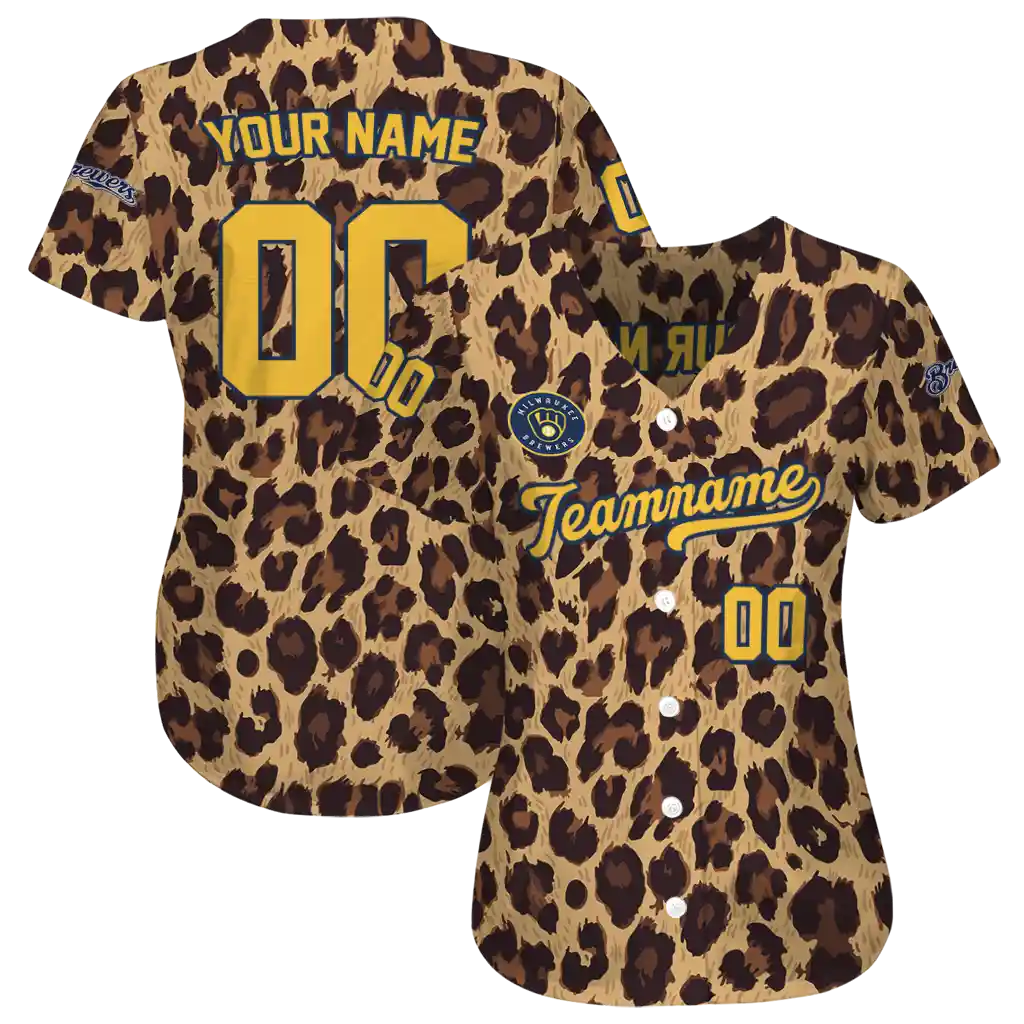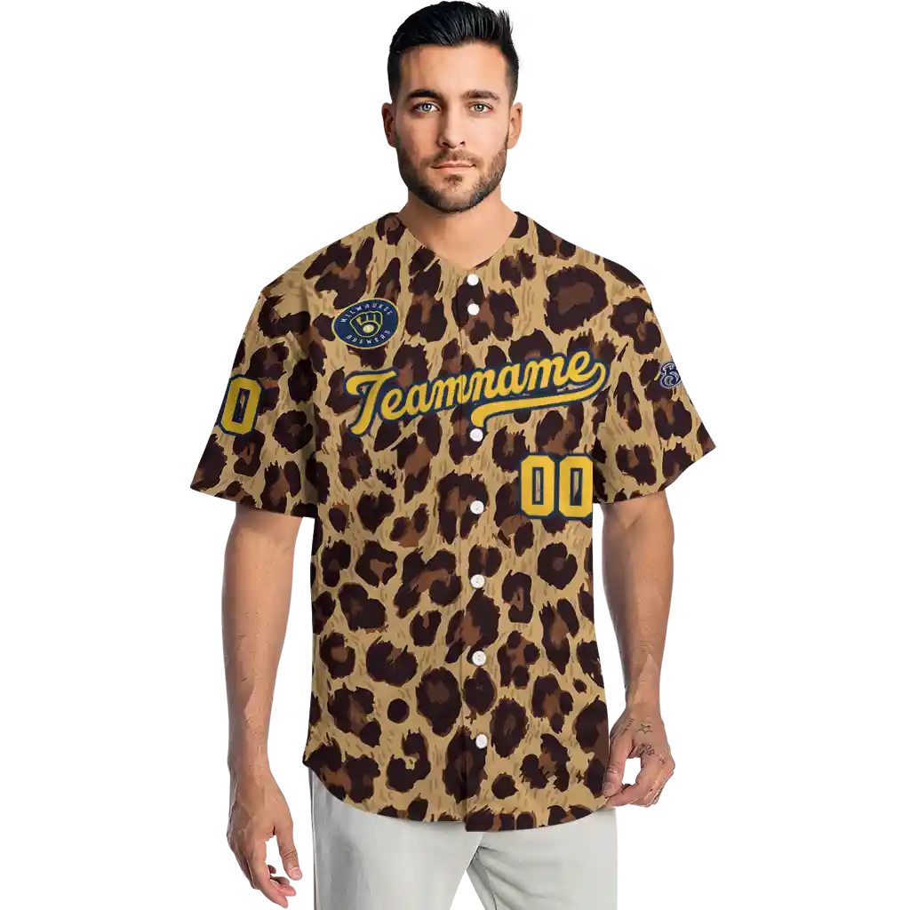 Milwaukee Brewers Jersey – Customized Leopard Spot Beige and Brown