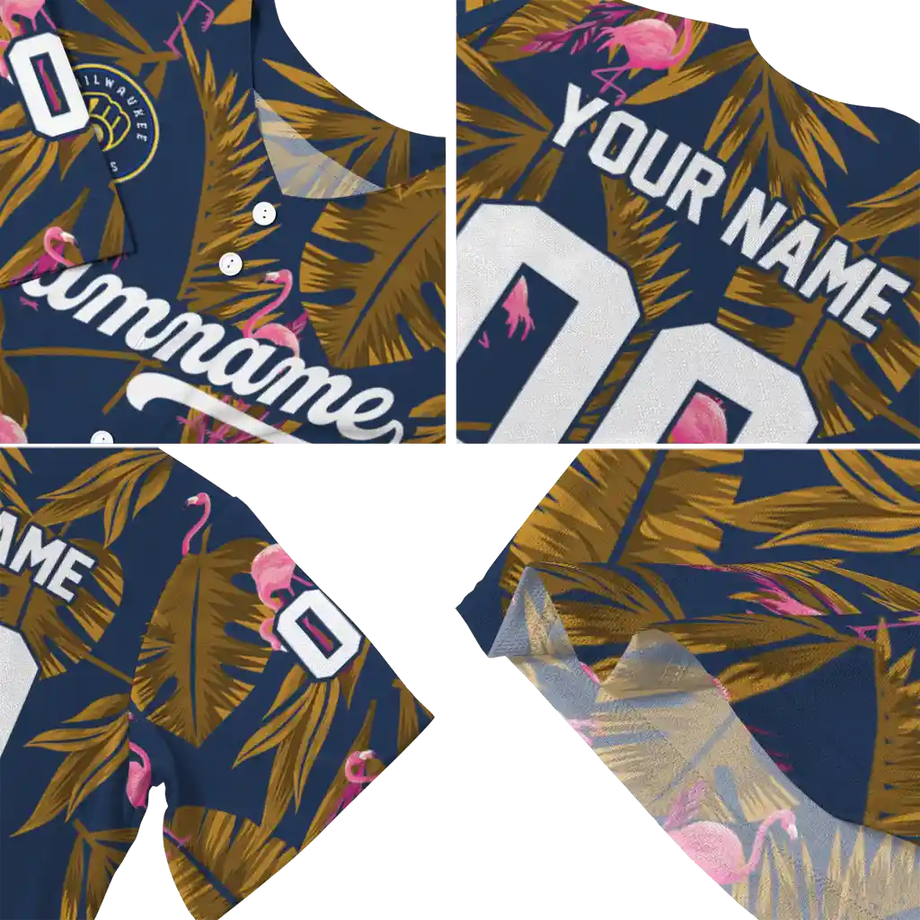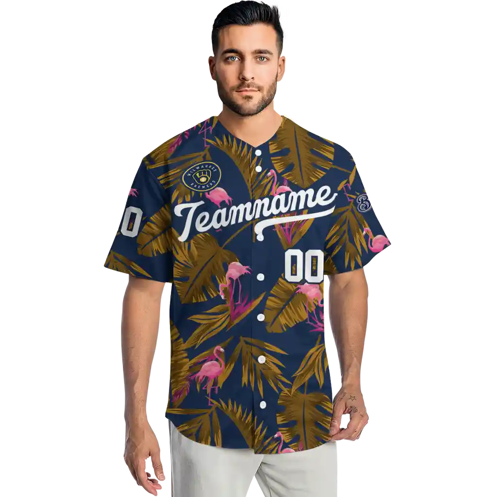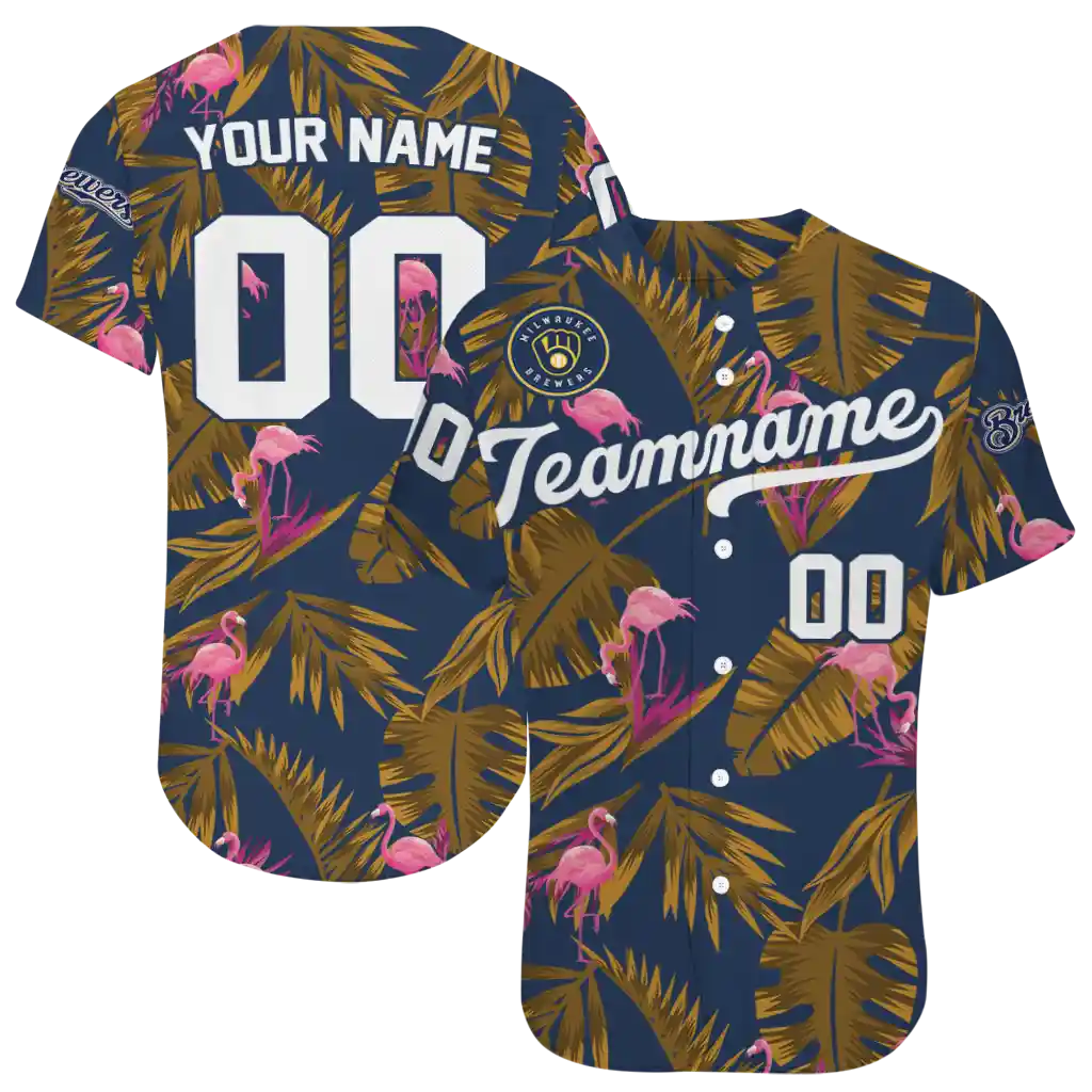 Milwaukee Brewers Jersey – Customized Tropical Flamingo Navy Blue