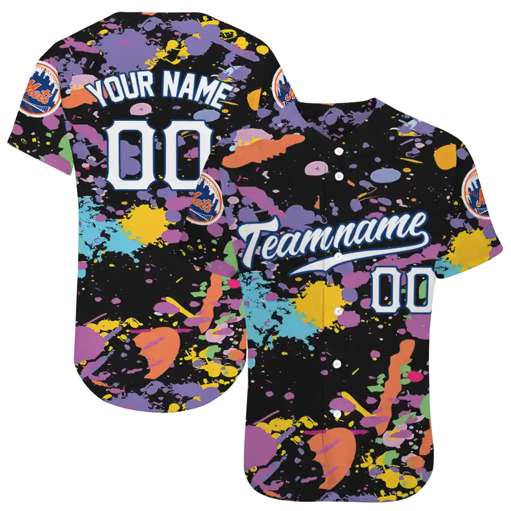 New York Mets Jersey – Customized Paint Splatter Black