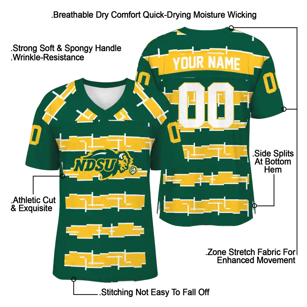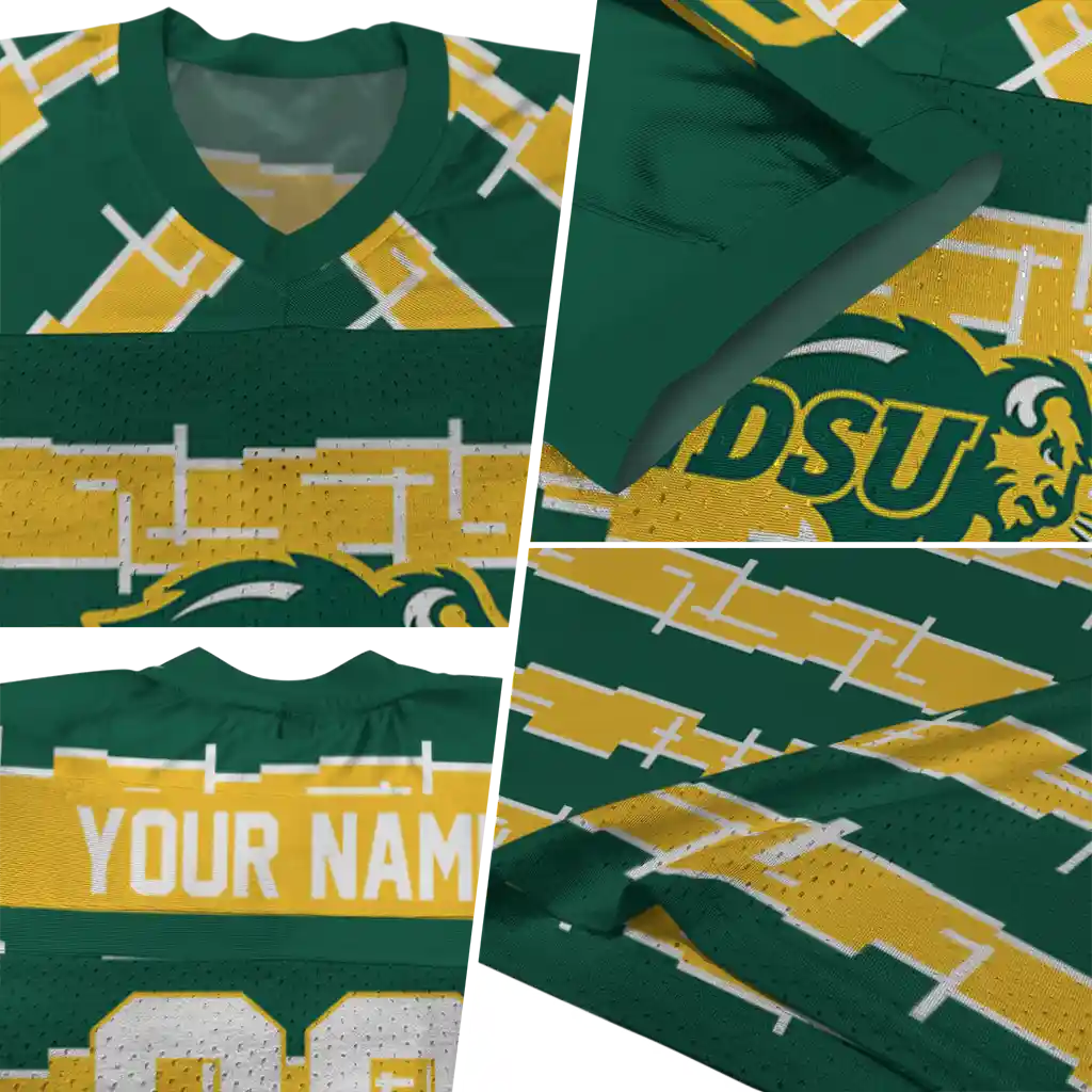 North Dakota State Bison Jersey – Customized Layered Grids Green
