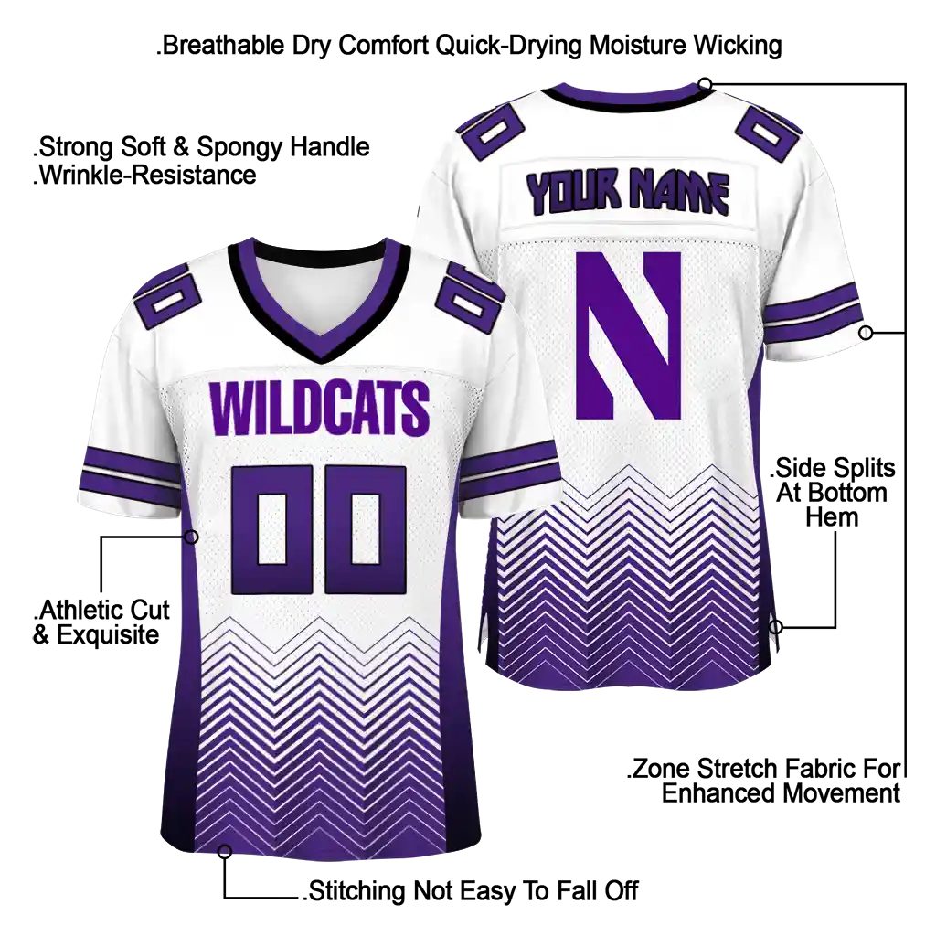 Northwestern Wildcats Jersey – Customized Halftone Sweep White Black