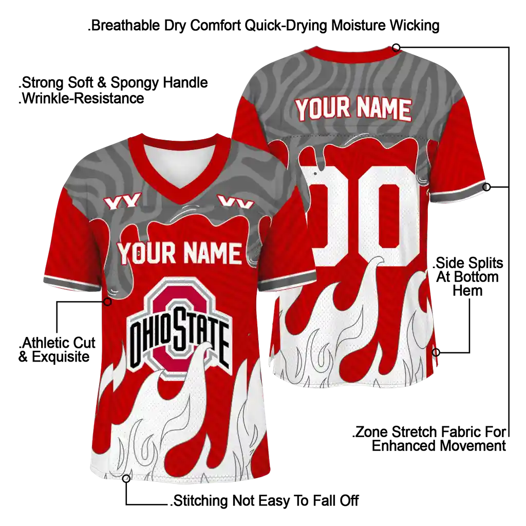 Ohio State Buckeyes Jersey – Customized Dripping Flames Scarlet White