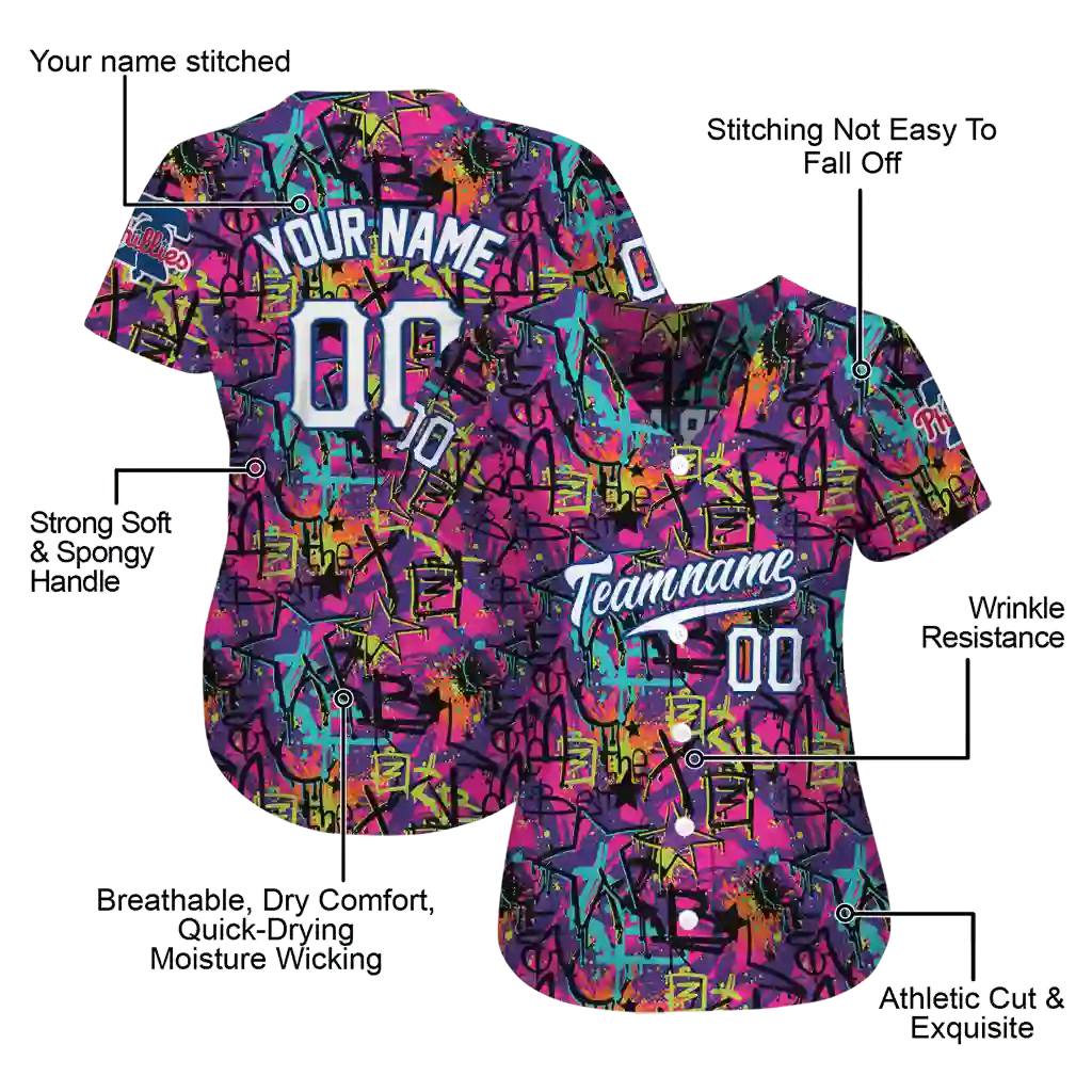Philadelphia Phillies Jersey – Customized Graffiti Tag Pink and Black