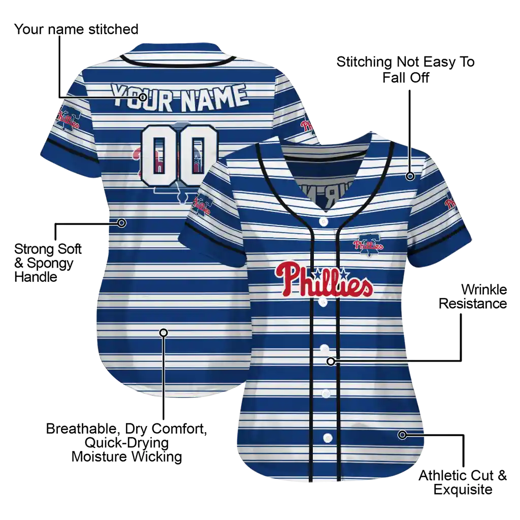 Philadelphia Phillies Jersey – Customized Stripe Layers Blue White