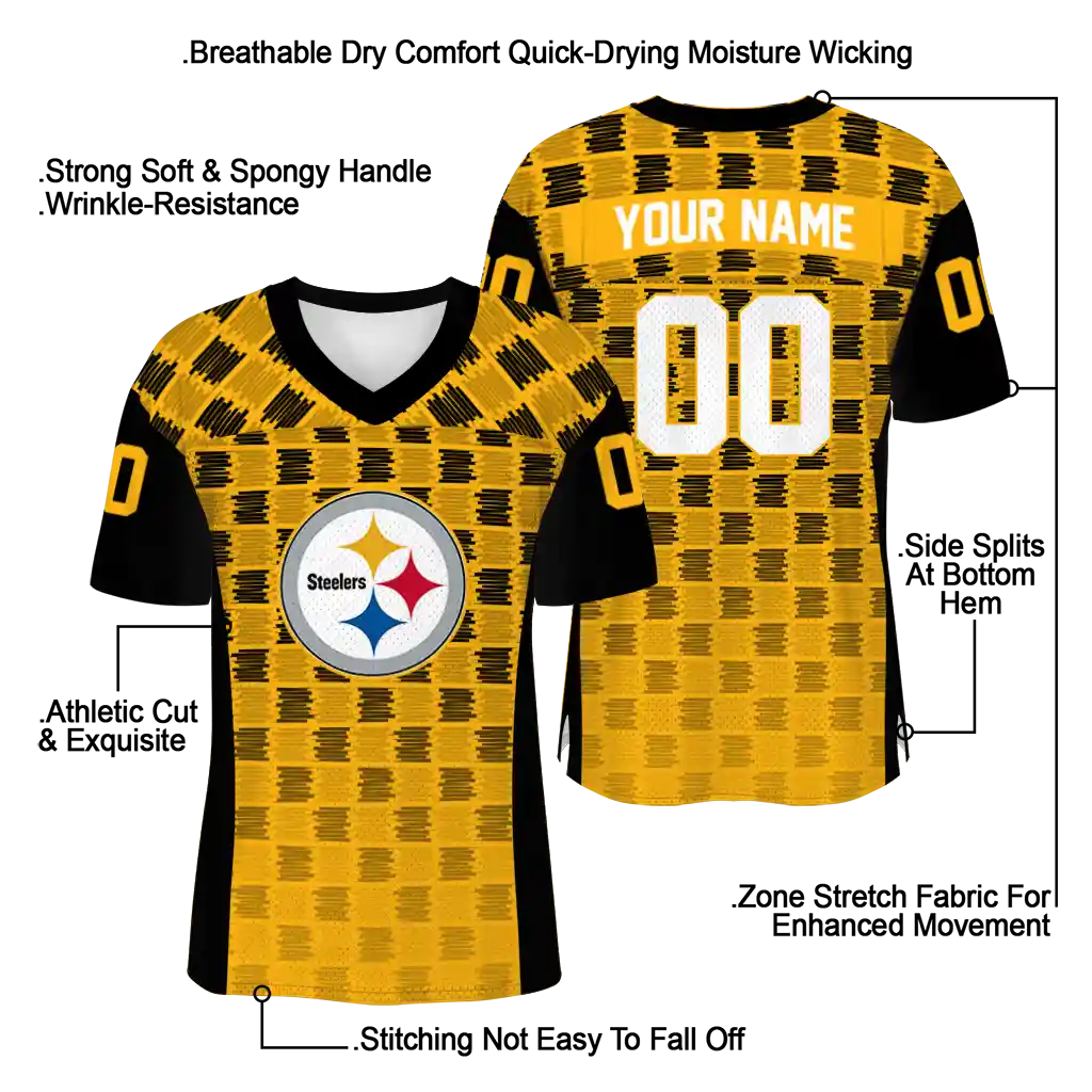Pittsburgh Steelers Jersey – Customized Stacked Rectangle Gold