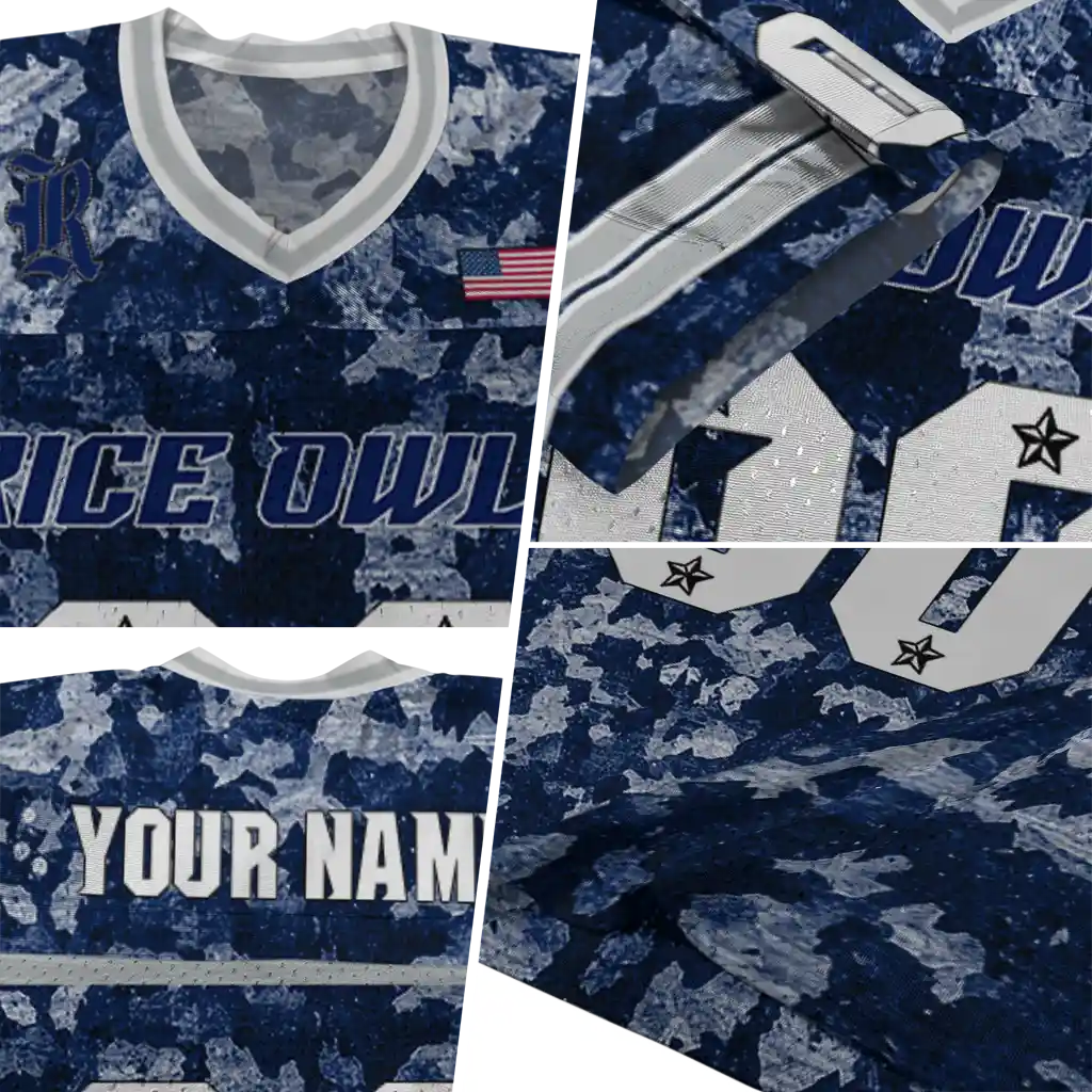 Rice Owls Jersey – Customized Camouflage Abstract Navy Blue