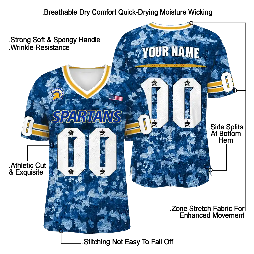 San Jose State Spartans Jersey – Customized Camouflage Abstract Blue