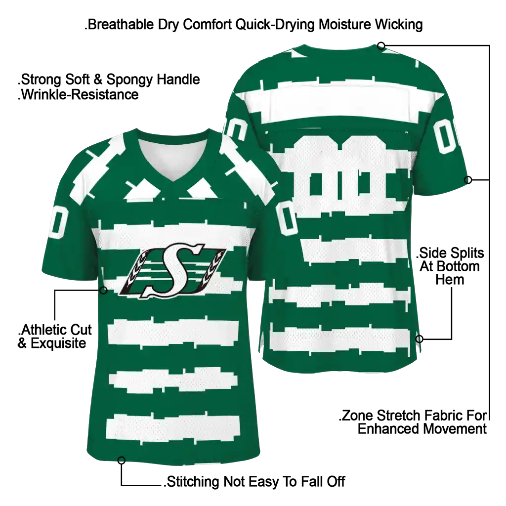 Saskatchewan Roughriders Jersey – Customized Layered Grids Green