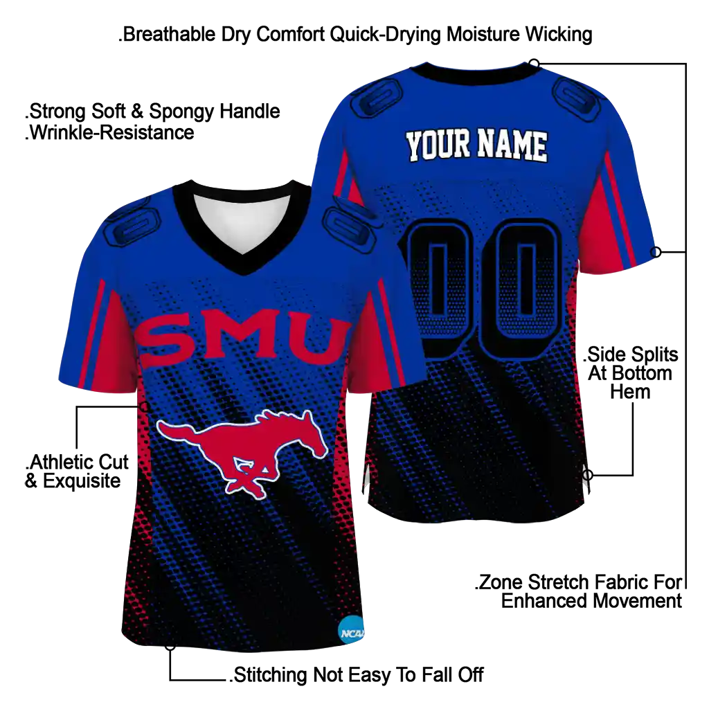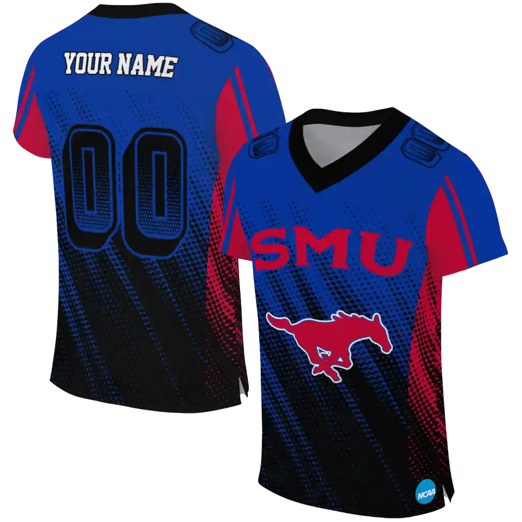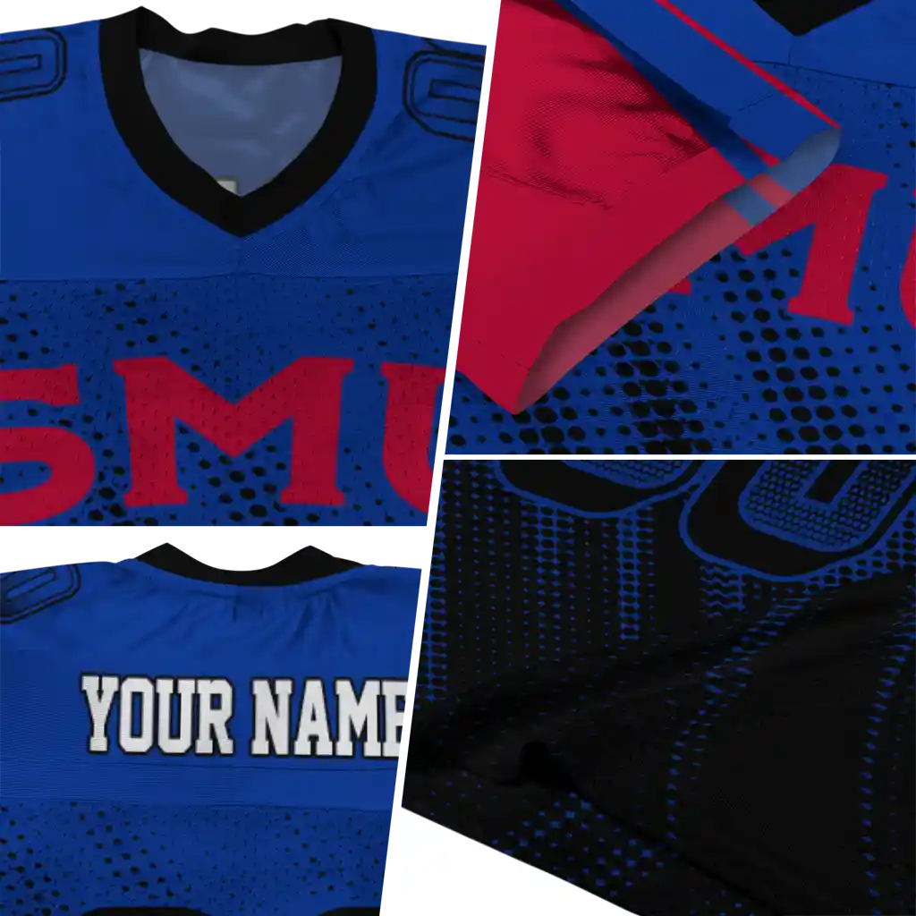 SMU Mustangs Jersey – Customized Halftone Flow Blue Black