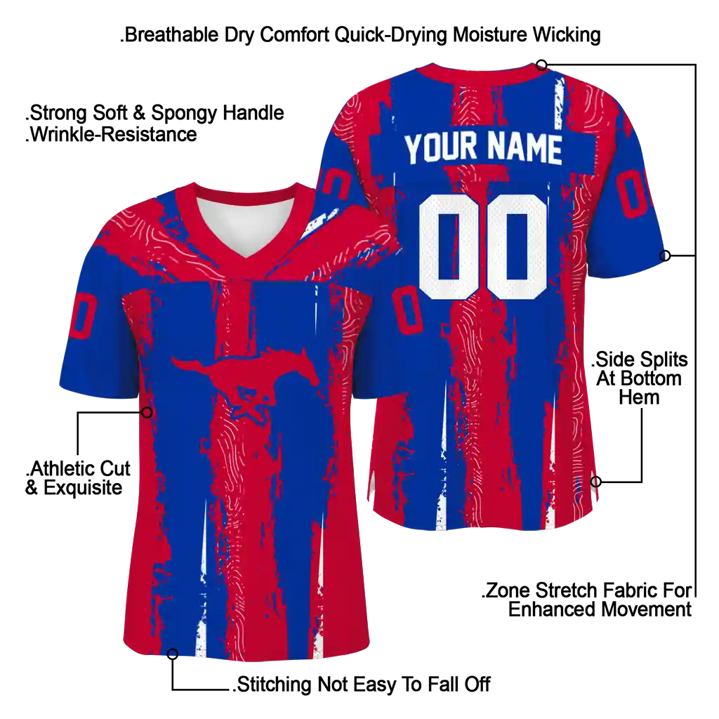 SMU Mustangs Jersey – Customized Striped Texture Blue